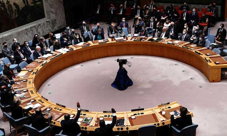 ఉక్రెయిన్లో రష్యా చర్యలపై ఐక్యరాజ్యసమితి భద్రతా మండలిలో (UNSC) ఓటింగ్కు భారత్ దూరంగా ఉన్నది. ఉక్రెయిన్పై రష్యా దాడి నేపథ్యంలో ఐక్యరాజ్య సమితి భద్రతా మండలి అత్యవసరంగా సమావేశమయింది. రష్యా దాడిని ఖండిస్తూ భద్రతా మండలిలో ప్రవేశపెట్టిన ముసాయిదా తీర్మానాన్ని రష్యా వీటో చేసింది. మండలిలోని మొత్తం 15 సభ్యదేశాల్లో 11 దేశాలు రష్యాకు వ్యతిరేకంగా ఓటు వేశాయి. అయితే మొదటి నుంచి ఉక్రెయిన్-రష్యా వివాదంలో తటస్థంగా ఉన్న భారత్తో పాటు చైనా, యూఏఈలు ఈ ఓటింగ్కు గైర్హాజరయ్యాయి. కాగా, భద్రతా మండలిలో ఐదు శాశ్వత దేశాల్లో ఒకటైన రష్యా తన విటో అధికారాన్ని ఉపయోగించి ముసాయిదాను తిరస్కరించింది.