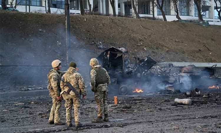 ఉక్రెయిన్పై రష్యా యుద్ధం శనివారానికి మూడో రోజుకు చేరింది. రాజధాని కీవ్ వైపు రష్యా దళాలు దూసుకుపోతున్నాయి. ఈ నేపథ్యంలో తాజా సమాచారాన్ని బ్రిటన్ రక్షణ మంత్రిత్వ శాఖ శనివారం విడుదల చేసింది. రష్యా సైనిక దళాలు కీవ్ నగరానికి 30 కిలోమీటర్ల దూరంలో ఉన్నాయని తెలిపింది. అయితే రష్యా దళాలు ముందుకు సాగుతున్నప్పటికీ ఇంకా పైచేయి సాధించలేదని పేర్కొంది. ఉక్రెయిన్ ఎయిర్స్పేస్పై నియంత్రణను రష్యా ఇంకా తెచ్చుకోలేదని చెప్పింది. రష్యా అధ్యక్షుడు పుతిన్ ఆశించినంతగా ఆ దేశ వైమానిక దళం ప్రభావాన్ని చూపలేకపోయినట్లు అభిప్రాయపడింది.