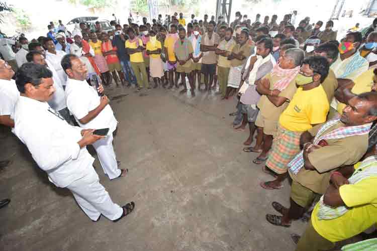 అన్ని వర్గాల కార్మికులను కంటికి రెప్పలా కాపాడుకుంటున్నామని, హమాలీల సంక్షేమానికి కట్టుబడి ఉన్నామని మంత్రి కొప్పుల ఈశ్వర్ ఉద్ఘాటించారు. సోమవారం ఆయన మున్సిపల్ పరిధిలోని కాటన్ మిల్లుల్లోని హమాలీ కార్మికులను కలిశారు. టీఆర్ఎస్ అభ్యర్థి గెల్లు శ్రీనివాస్ యాదవ్ కోసం ప్రచారం చేశారు. వారితో కాసేపు ఇష్టాగోష్టి చేశారు. ఇండ్లులేని నిరుపేదలకు డబుల్ బెడ్రూం ఇండ్లను కట్టించిన తర్వాత మొదటి ప్రాధాన్యత కింది కార్మికులకు అందిస్తామని తెలిపారు. కార్మికుల పక్షపాతిగా ఉంటున్నామని, గెల్లు సీనును గెలిపించుకుంటే మరింత అభివృద్ధి, సంక్షేమం జరుగుతుందని తెలిపారు. తర్వాత 500మంది కార్మికులంతా టీఆర్ఎస్కే ఓటేస్తామని మంత్రికి హామీ ఇచ్చారు. గెల్లు సీనును గెలిపించుకుని కార్మికుల సత్తా చూపిస్తామని ప్రతినబూనారు. ఇక్కడ మంత్రితో పాటు రామగుండం ఎమ్మెల్యే కోరుకంటి చందర్, హమాలీ కార్మిక సంఘం అధ్యక్షుడు ఒల్లాల శ్రీనివాస్, టీఆర్ఎస్ అర్బన్శాఖ అధ్యక్షుడు రాజ్కుమార్, కౌన్సిలర్ పొనగంటి మల్లయ్య, సీనియర్ నాయకుడు వాసాల రామస్వామి, కార్మికులు ఉన్నారు.