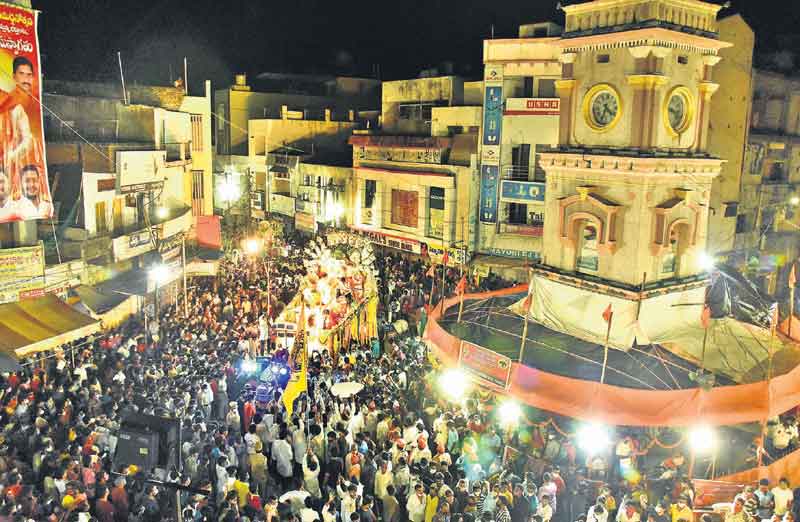 టవర్ సరిల్ వద్ద సీనియర్ కళాకారులు గోగుల ప్రసాద్ నిర్వహణలో సంగెం రాధాకృష్ణ బృందం ఆధ్వర్యంలో ఏర్పాటు చేసిన కార్యక్రమాలు భక్తులను ఆకట్టుకున్నాయి. ఈ సందర్భంగా టవర్ సర్కిల్కు వచ్చే భక్తులు డప్పు చప్పుళ్లకు నృత్యాలు చేస్తూ, స్వామి వారిని స్మరిస్తూ పులకరించిపోయారు.