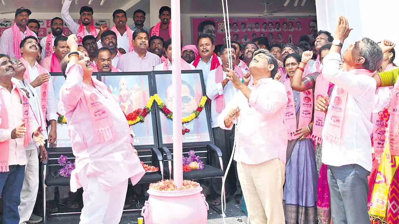 జిల్లాకేంద్రంలోని తెలంగాణ భవన్లో పార్టీ జిల్లా అధ్యక్షుడు తోట ఆగయ్య గులాబీ జెండాను ఎగురవేశారు. స్థానిక పాతబస్టాండ్లో అమరవీరుల స్తూపం వద్ద పట్టణ అధ్యక్షుడు జిందం చక్రపాణి జెండా ఆవిష్కరించారు. కొత్త బస్టాండ్లో తెలంగాణ తల్లి, నేతన్న విగ్రహాలకు నాయకులు పూలమాలలు వేసి నివాళులర్పించారు. వేములవాడ పట్టణంలోని తెలంగాణచౌక్లో బీఆర్ఎస్ నాయకులు తెలంగాణ తల్లి విగ్రహానికి పూలమాలలు వేసి నినాదాలు చేశారు. అనంతరం గులాబీ జెండాను ఆవిషరించి, స్వీట్లు పంచి సంబురాలు జరిపారు.