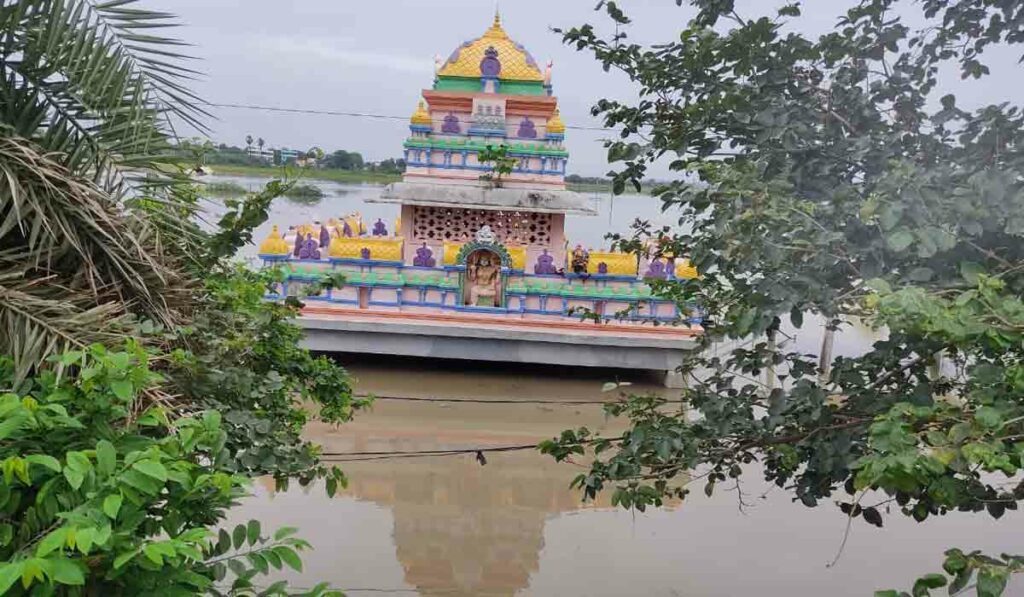 పెద్దపల్లి: జిల్లాలోని మంథని వద్ద గోదావరి ఉగ్రరూపం దాల్చింది. మండలంలో గోదావరి తీరం వెంబడి ఉన్న పొలాల్లోకి వరద నీరు భారీగా చేరింది. ప్రాచీన గౌతమేశ్వరస్వామి దేవాలయం చుట్టూ వరద నీరు చేరింది. దీంతో ఆలయంలో 28 మంది చిక్కుకుపోయారు. ఇందులో ఆలయ పూజారి సహా 10 మంది కుటుంబ సభ్యులు ఉన్నారు. చేపల వేటకు వెళ్లిన ఇద్దరు మత్య్సకారులు, నిన్న రాత్రి ఆలయంలో నిద్ర చేయడానికి వచ్చిన మరో 8 మంది ఉన్నారు. వారిని రక్షించడానికి అధికారులు ఏర్పాట్లు చేస్తున్నారు. కాగా, మంథనిలో గత మూడు రోజులుగా కురుస్తున్న వానలతో పోచమ్మ తల్లి ఆలయం నీట మునిగింది.