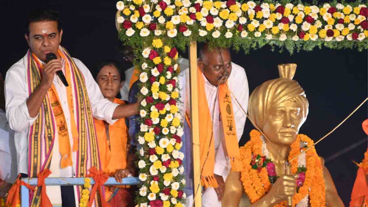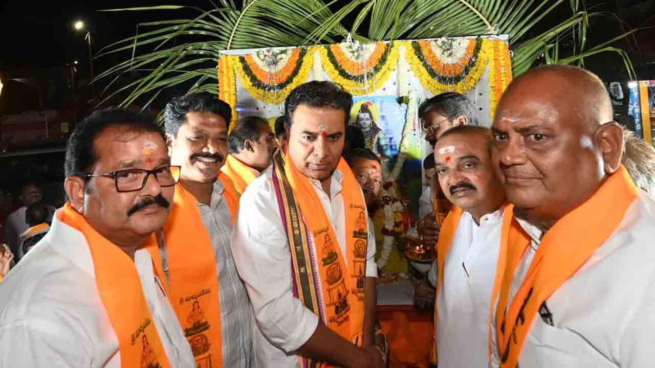 మార్కండేయ జయంతి ఉత్సవాల్లో ప్రత్యేక పూజలు చేసిన కేటీఆర్ పద్మశాలీలతో కలిసి మార్కండేయ స్వామి శోభయాత్రలో పాల్గొన్నారు. మార్కండేయ ఆలయం నుంచి గాంధీచౌక్, అంబేద్కర్ చౌక్, నేతన్న చౌరస్తా వరకు శోభయాత్ర కొనసాగింది. నేతన్న చౌక్లో నేతన్న విగ్రహానికి కేటీఆర్ పూలమాలు వేశారు. కేటీఆర్ రాకతో శోభయాత్రలో పద్మశాలీలు ఉత్సహాంగా పాల్గొన్నారు. అంతకుముందు కేటీఆర్కు పద్మశాలి సంఘం నేతలు, అనుబంధ సంఘాల నేతలు, బీఆర్ఎస్ నేతలు ఘన స్వాగతం పలికారు.