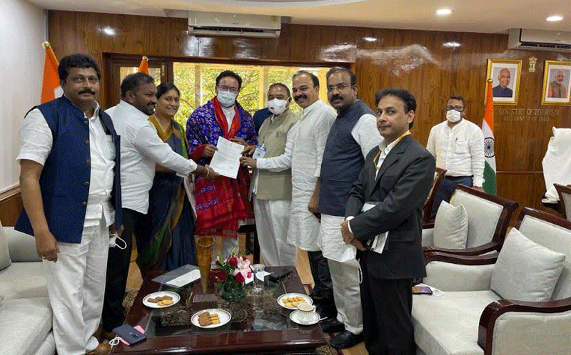 భద్రాచలం, ఆగస్టు 4: భద్రాచలంలోని రామాలయాన్ని ప్రసాద్ పథకంలో చేర్చాలని కోరుతూ బుధవారం టీఆర్ఎస్ ఎంపీలు బండ్ల ప్రకాశ్, రంజిత్రెడ్డి, మాలోత్ కవిత, బడుగుల లింగయ్య యాదవ్, పసునూరి దయాకర్, వెంకటేశ్ బుధవారం ఢిల్లీలో కేంద్ర మంత్రి కిషన్రెడ్డిని కలిసి వినతి పత్రం అందించారు. రామాలయానికి నిత్యం వేలాది మంది వస్తుంటారని, ఈ ఆలయాన్ని అభివృద్ధి చేయాల్సిన ఆవశ్యకత ఉందన్నారు. ఆలయానికి వీలైనంత మేలు చేయాలన్నారు.