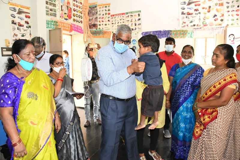 భద్రాచలం/ దుమ్ముగూడెం/ పర్ణశాల/ సారపాక/ చర్ల, అక్టోబర్ 22: ఎవరూ ఆకలితో అలమటించకూడదనేదే తమ కమిటీ ప్రధాన లక్ష్యమని రాష్ట్ర ఆహార భద్రత చట్టం కమిటీ చైర్మన్ తిరుమలరెడ్డి అన్నారు. భద్రాచలం, దుమ్ముగూడెం, చర్ల మండలాల్లో తన బృందంతో కలిసి శుక్రవారం ఆయన విస్తృతంగా పర్యటించారు. తొలుత దుమ్ముగూడెం మండలం నర్సాపురం జడ్పీ పాఠశాలను సందర్శించి అక్కడ విద్యార్థులకు అందుతున్న మధ్యాహ్న భోజనం, ఆహార సరఫరా గురించి ఆరాతీశారు. అంగన్వాడీ కేంద్రం వద్దకు వెళ్లి గర్భిణులు, బాలింతలు, చిన్నారులకు అందుతున్న పోషకాహారం వివరాలను తెలుసుకున్నారు. ఓ చిన్నారిని ఎత్తుకుని బరువును పరిశీలించారు. ఈ సందర్భంగా ఆయన మాట్లాడుతూ ఆరోగ్య తెలంగాణ లక్ష్యంగా ఆహార కమిటీ పనిచేస్తోందని, మారుమూల గిరిజనులకు ఆహార సరఫరా జరుగుతుందా? లేదా? అని తెలుసుకునేందుకు జిల్లాకు పర్యటనకు వచ్చి క్షేత్రస్థాయిలో పరిశీలన చేస్తున్నామని వివరించారు. అదనపు కలెక్టర్ కర్నాటి వెంకటేశ్వర్లు, ఆహార కమిటీ బృందం సభ్యులతోపాటు డీఎంహెచ్వో శిరీష, డీఈవో సోమశేఖరశర్మ, డీఆర్డీవో మధుసూదన్రాజు పాల్గొన్నారు. అనంతరం చర్ల మండలంలోని సంక్షేమ హాస్టళ్లు, అంగన్వాడీ కేంద్రాలను కూడా సందర్శించారు. పర్ణశాలలోని శ్రీసీతారామచంద్రస్వామిని కూడా చైర్మన్ తిరుమలరెడ్డి కుటుంబసమేతంగా దర్శించుకున్నారు. అనంతరం ఐటీసీ పీఎస్పీడీలో బస చేసేందుకు వచ్చిన ఆయన విలేకరులతో మాట్లాడారు. భద్రాచలంలోని జీసీసీ కార్యాలయం ఆవరణలో షాంపూలు, సబ్బుల తయారీ కేంద్రాన్ని, ఎంఎల్ఎస్ స్టాక్ పాయింట్ను పరిశీలించి సంతృప్తి వ్యక్తం చేశారు.