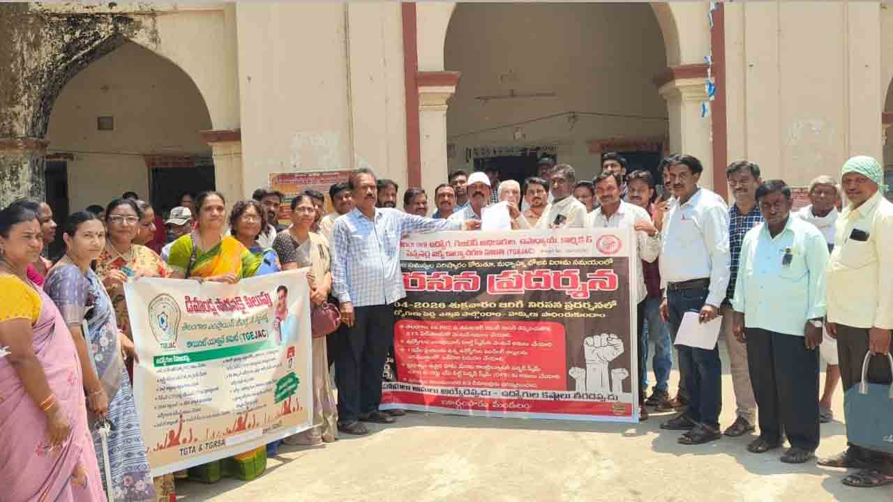 రఘునాథపాలెం: తహసీల్ ఆఫీస్ ఎదుట నిరసన చేస్తున్న ఉపాధ్యాయ జేఏసీ నేతలు