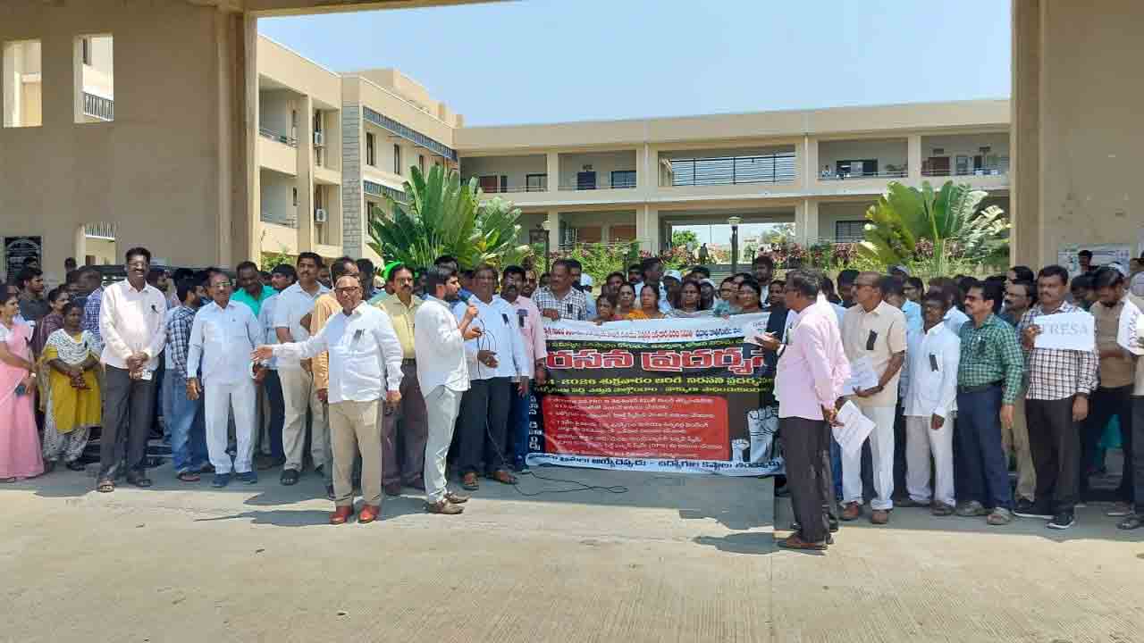 ఆయా పాఠశాలల్లో ఉపాధ్యాయులు నిరసన తెలిపారు. ఈ సందర్భంగా ఉద్యోగ సంఘాల నాయకులు మాట్లాడుతూ ఉద్యోగుల సమస్యలు ఏళ్ల తరబడి పెండింగ్లో ఉండటంతో ఆర్థికంగా తీవ్ర ఇబ్బందులు ఎదుర్కొంటున్నామని ఆవేదన వ్యక్తం చేశారు. ప్రధానంగా జూన్ 2వ తేదీ నాటికి కొత్త పీఆర్సీని 51 శాతం ఫిట్మెంట్తో తక్షణమే అమలు చేయాలని డిమాండ్ చేశారు. పెండింగ్లో ఉన్న ఐదు డీఏలను విడుదల చేయాలని, పెండింగ్ బిల్లులు చెల్లించాలని, నగదు రహిత ఆరోగ్య పథకాన్ని ప్రారంభించాలని, సీపీఎస్ను రద్దు చేసి ఓపీఎస్ విధానాన్ని పునరుద్ధరించాలని కోరారు.