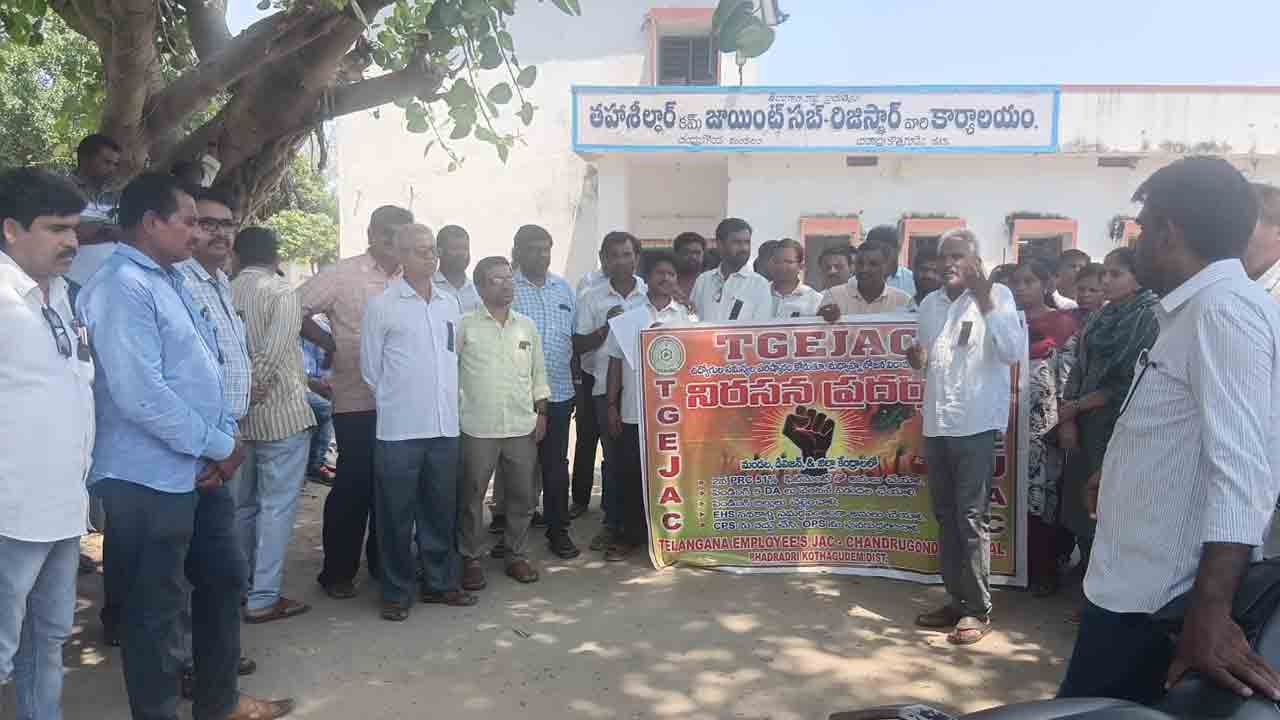 చండ్రుగొండ తహసీల్దార్ కార్యాలయం ఆందోళన చేస్తున్న ఉద్యోగులు