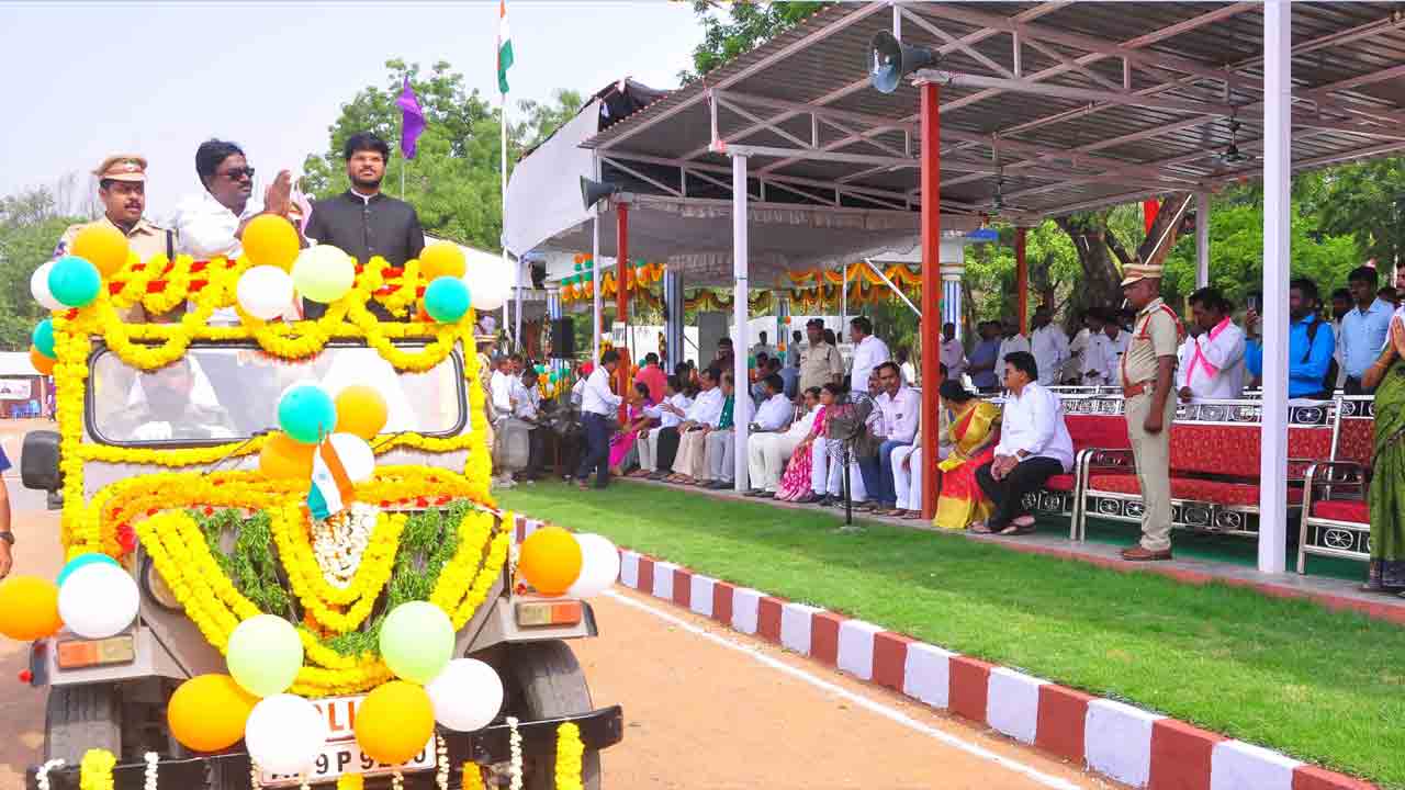 ఎనిమిదేండ్లలో అమలు చేసిన పథకాలు దేశానికే ఆదర్శంగా నిలిచాయని రాష్ట్ర రవాణాశాఖ మంత్రి పువ్వాడ అజయ్కుమార్ పేర్కొన్నారు. ఖమ్మం నగరంలోని పోలీస్ పరేడ్గ్రౌండ్లో గురువారం నిర్వహించిన తెలంగాణ ఆవిర్భావ సంబురాలు అంబరాన్నంటాయి. ఈ వేడుకలకు మంత్రి ముఖ్యఅతిథిగా హాజరై జాతీయ పతాకాన్ని ఆవిష్కరించారు. అమరవీరుల స్తూపానికి నివాళి అర్పించి, పోలీసుల గౌరవ వందనాన్ని స్వీకరించారు. ఈ సందర్భంగా మంత్రి మాట్లాడుతూ అభివృద్ధి, సంక్షేమంలో నంబర్వన్ స్థానంలో నిలిచామని పేర్కొన్నారు