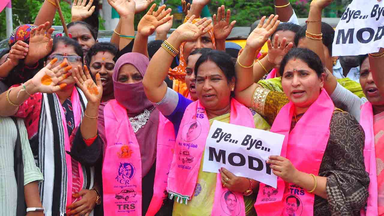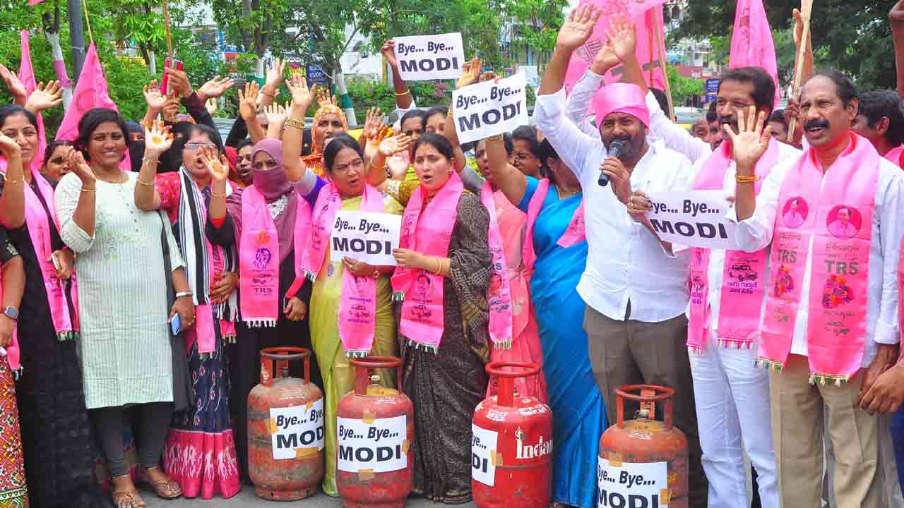 ఇప్పటికే పెరిగిన నిత్యావసరాల ధరలతో ఉక్కిరిబిక్కిరి అవుతున్న ప్రజలపై కేంద్రంలోని మోదీ సర్కారు మరో భారం మోపింది. గృహావసరాల కోసం వినియోగించే 14.2 కిలోల ఎల్పీజీ సిలిండర్పై రూ. 50 మేర పెంచింది. దీంతో ఉమ్మడి ఖమ్మం జిల్లావ్యాప్తంగా జనాగ్రహం పెల్లుబికింది. పెంచిన గ్యాస్ ధరలను వెంటనే తగ్గించాలని డిమాండ్ చేస్తూ టీఆర్ఎస్ ఆధ్వర్యంలో పార్టీశ్రేణులు గురువారం పెద్దఎత్తున ఆందోళనలు నిర్వహించాయి. ఆయా ప్రాంతాల్లో ఖాళీ సిలిండర్లతో ప్రదర్శనలు నిర్వహించారు. ధర్నాలు, రాస్తారోకోలు చేపట్టారు. బైబై మోదీ అంటూ నినాదాలు చేశారు. ఆయా చోట్ల జరిగిన ఆందోళన కార్యక్రమాల్లో ఖమ్మం ఎంపీ నామా నాగేశ్వరరావు, ఎమ్మెల్సీ తాతా మధుసూదన్, ఎమ్మెల్యేలు రాములు నాయక్, మెచ్చా నాగేశ్వరరావు, వెంకట వీరయ్య తదితరులు పాల్గొన్నారు.