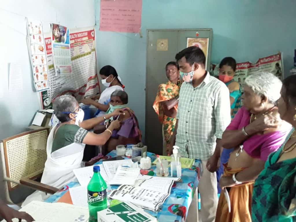 మండలకేంద్రంలోని సబ్ సెంటర్లో 48మందికి రెండో డోస్, ఇద్దరికి ఫస్ట డోస్ టీకా వేసినట్లు డాక్టర్ సుబ్బారెడ్డి పేర్కొన్నారు. ఈ సందర్భంగా ఆయన మాట్లాడుతూ గ్రామాల్లో కొంతమంది టీకా వేసుకునేందుకు భయాందోళన చెందుతున్నారని, వారి ఇంటికెళ్లి వ్యాక్సిన్పై అవగాహన కల్పించాలన్నారు. సర్పంచులు, ఎంపీటీసీలు గ్రామాల్లో అవగాహన కల్పించి వందశాతం వ్యాక్సినేషన్ సహకరించాలన్నారు. కార్యక్రమంలో ఏఎన్ఎం కృష్ణకుమారి, ఆశవర్కర్లు సునీత, బాలమణి, సుమతి, శశికళ, జ్యోతి తదితరులు పాల్గొన్నారు.