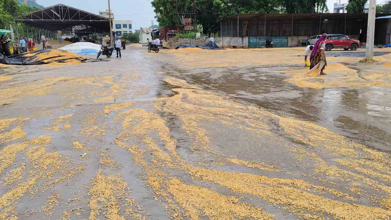 మార్కెట్కు గురువారం 6,689 క్వింటాళ్ల మొక్కజొన్న అమ్మకానికి వచ్చింది. టెండ ర్లు పూర్తయ్యాక వర్షం కురిసింది. దీంతో ఆరుబయట ఉన్న మొక్కజొన్న కుప్పలతోపాటు ఆరబెట్టిన మొక్కజొన్న వర్షపునీటిలో కొట్టుకుపోయింది.రైతులు ఎంత ప్రయత్నించినా ఫలితం లేకుండా పోయింది. దాదాపుగా 3వేల బస్తాల మొక్కజొన్న తడిసిపోయి ఉంటుందని వ్యాపారవర్గాలు తెలిపాయి. మిడ్జిల్ మండలానికి చెందిన రైతు గోపాల్ రెండు ట్రాక్టర్లలో మొక్కజొన్న తీసుకొచ్చి ఆరబెట్టగా, వర్షానికి కొట్టుకుపోయిందని ఆవేదన వ్యక్తం చేశాడు.