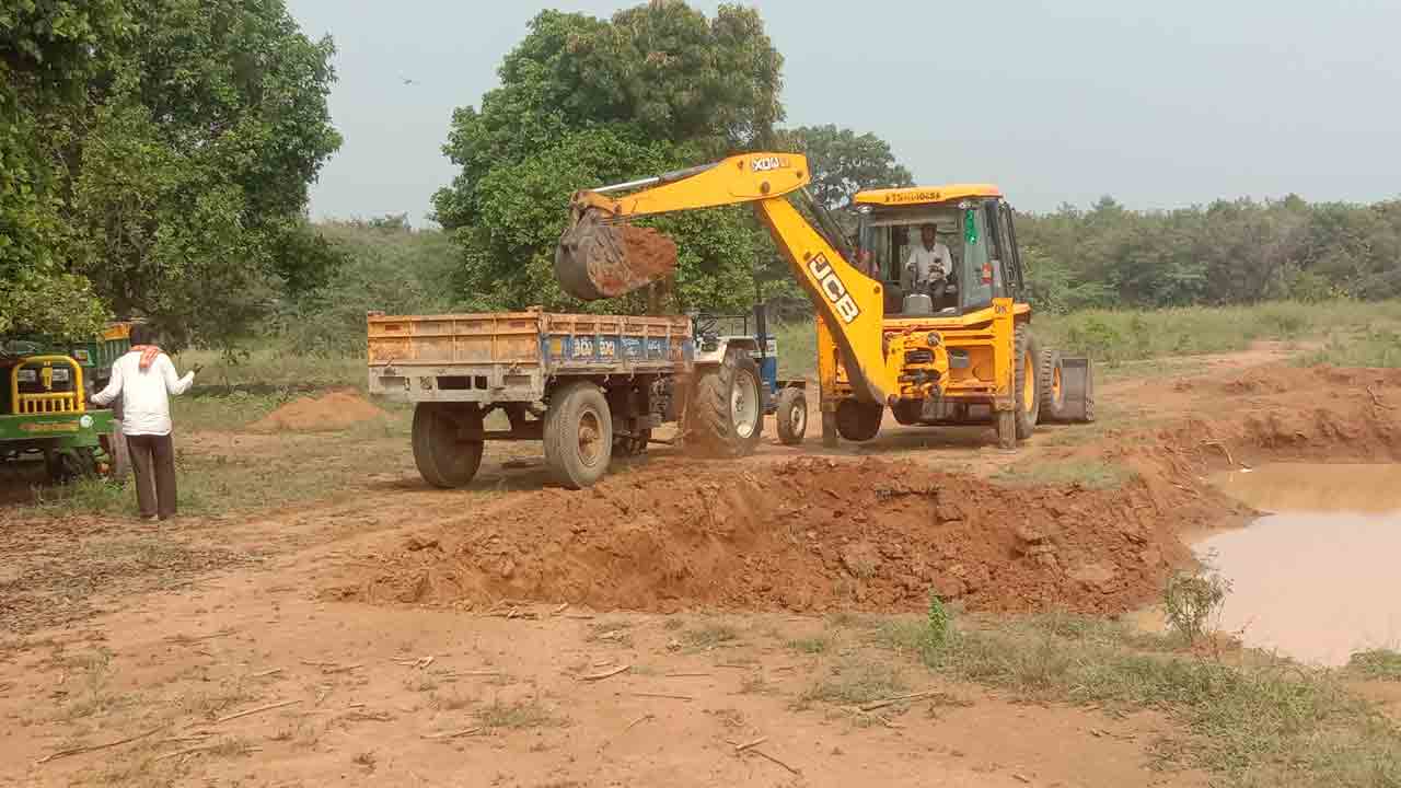 ఎర్రకుంట చెరువును సురభిరాజుల కాలంలో వన్యప్రాణుల దాహం తీర్చేందుకు నిర్మించారు. అది శిథిలావస్థకు చేరుకోవడంతో వేసవిలో చెరువు పూడిక తీశారు. ఇటీవల కురిసిన వర్షాలకు ఎర్రకుంటలో నీళ్లు చేరాయి. అయితే, కొన్ని రోజుల కిందట జిల్లా అటవీశాఖ అధికారులు ఈ ప్రాంతాన్ని విజిట్ చేసి.. వన్యప్రాణుల దాహం తీర్చేందుకు ప్రత్యామ్నాయ చర్యలు చేపట్టాలని స్థానిక అధికారులకు సూచించారు. అయితే, ఎర్రకుంటలో బోర్ వేసి సోలార్ పవర్తో నీటిని నింపేందుకుగానూ ఫారెస్ట్ సెక్షానాఫీసర్ ఆధ్వర్యంలో పనులు జరుగుతున్నాయి. ఇంతవరకు బాగానే ఉన్నా.. వాల్టా చట్టానికి తూట్లు పొడిచి ఎర్ర మట్టిని తరలించడమేంటని పలువురు ప్రశ్నిస్తున్నారు.