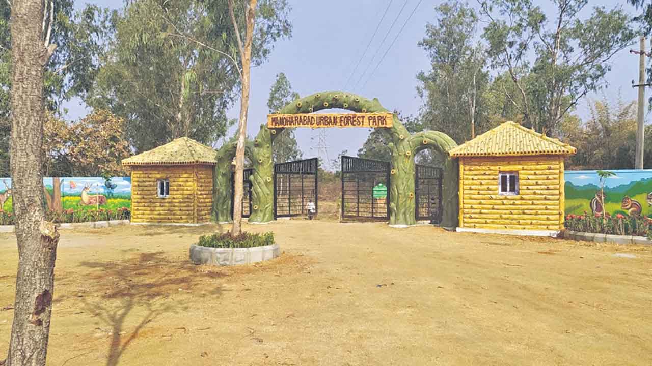యాంత్రిక జీవనానికి దూరంగా, విషవాయువులు జాడలేని స్వచ్ఛమైన గాలిని అందించే ఆక్సిజన్ పార్కు లుగా నేడు తెలంగాణలోని అటవీ ప్రాంతాలు రూపుదిద్దుకుంటున్నాయి. అటవీ ప్రాం తాన్ని సుందరవనంగా రూపుదిద్ది, ఓ పర్యాటక ప్రాంతంగా మా ర్చేందుకు సీఎం కేసీఆర్ ఆక్సిజన్ పార్కులను ఏర్పాటు చేశారు. 44వ జాతీయ రహదారిపై వెళ్లే ప్రయాణికులకు సేద తీర్చడంతో పాటు, డివిజన్ పరిధిలోని ప్రజలకు స్వచ్ఛమైన గాలిని అందించే రకరకాల జాతుల మొక్కలతో, సేద తీరేందుకు వివిధ రకాల ఆకారాలతో కూడిన కుర్చీలతో పాటు సకల హంగులతో రూపుదిద్దుకుంటుంది. మనోహరాబాద్ ఫారెస్ట్ రేంజ్ పరిధిలో 349 హెక్టార్ల రిజర్వు ఫారెస్ట్లో ఏర్పాటు చేసే ఈ రెండు ఆక్సిజన్ పార్కులు సం దర్శకులను ఆకట్టుకోబోతున్నాయి. మెదక్ జిల్లాలోనే మరో అతిపెద్ద పర్యాటక కేంద్రంగా రెండు ఆక్సిజన్ పార్కులు మనోహరాబాద్ మండలంలో ప్రారంభానికి సిద్ధమవుతున్నాయి. కలకత్తాకు చెందిన పలువురు శిల్పనైపుణ్యం పొందిన మేస్త్రీలతో వెలకం కమా న్లు, యోగా షెడ్లను, సిట్టింగ్ టేబుల్లను అందంగా నిర్మించారు.