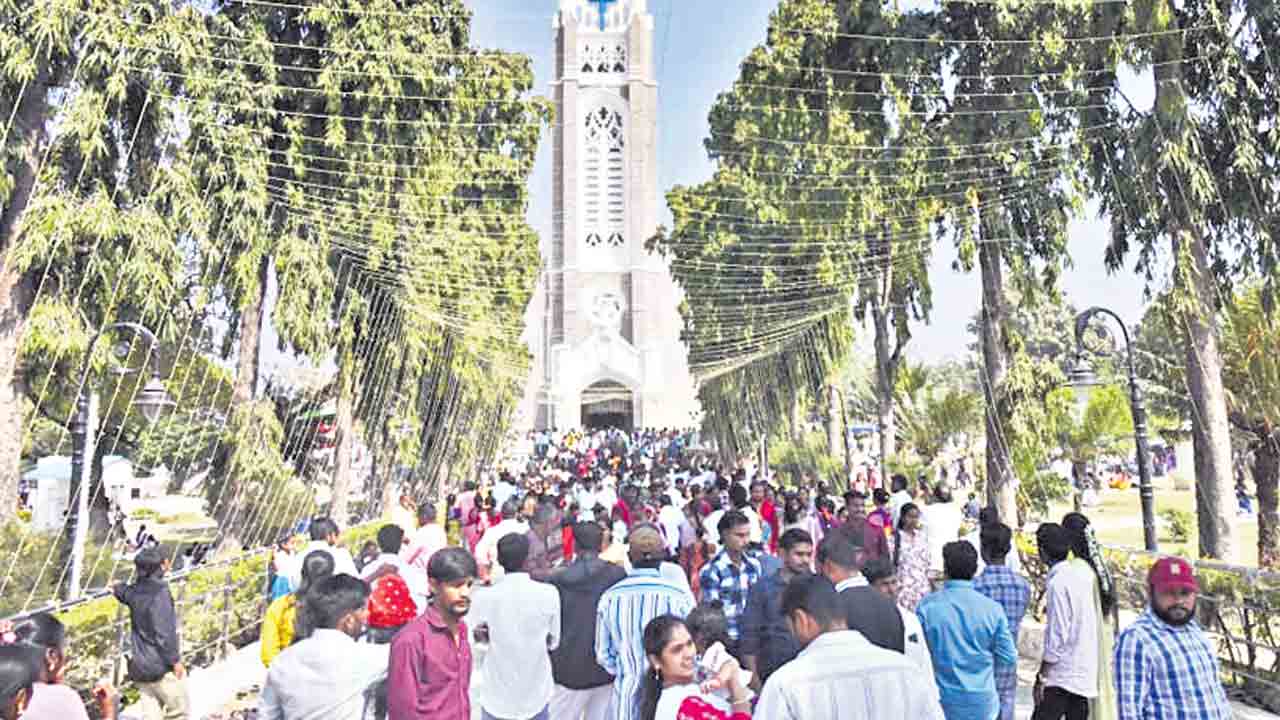 మెదక్ మున్సిపాలిటీ, డిసెంబర్ 25 : ప్రపంచ ప్రఖ్యాతి గాంచిన మెదక్ క్యాథడ్రల్ చర్చిలో క్రిస్మస్ అంగరంగ వైభవంగా జరిగాయి. క్రిస్మస్ పర్వదినాన్ని పురస్కరించుకొని గురువారం తెల్లవారుజామున 4.30 గంటల ప్రాంతంలో చర్చిలో శిలువ ఊరేగింపుతో వేడుకలు ప్రారంభమయ్యాయి. తొలి ఆరాధన దైవంలో సినాడ్ మాడరేటర్, బిషప్ రెవరెండ్ రూబెన్ మార్క్ పాల్గ్గొని భక్తులనుద్దేశించి వాక్యోపదేశం చేశారు. యేసు ప్రభువు విశ్వానికి మార్గం చూపే లోక రక్షకుడని, యేసు చూపిన మార్గంలో ప్రతి ఒక్కరూ నడుచుకోవాలని పిలుపునిచ్చారు.