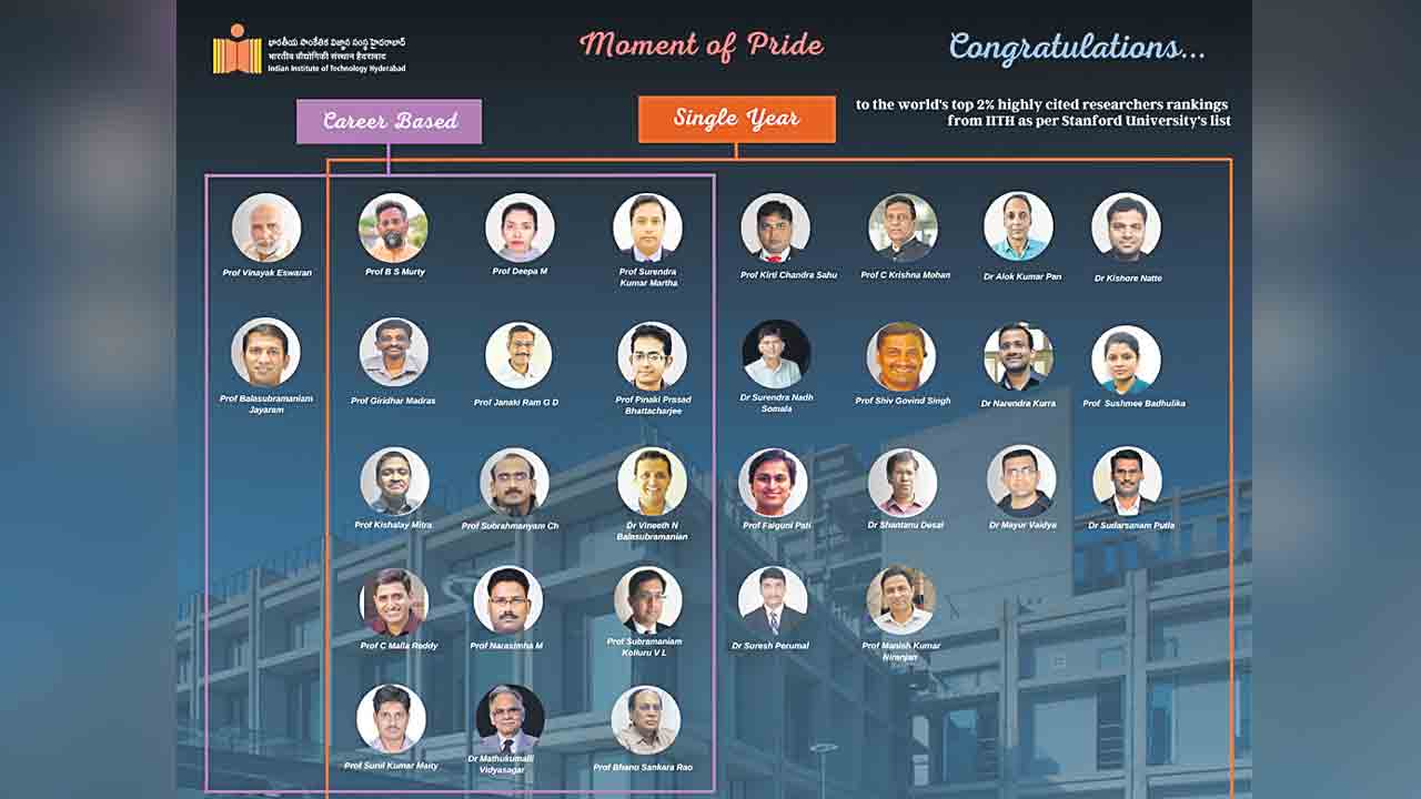 ఈ సందర్భంగా శుక్రవారం ఐఐటీహెచ్ బోర్డు ఆఫ్ గవర్నర్స్ చైర్మన్ డాక్ట ర్ బీ.వీ.ఆర్ మోహన్రెడ్డి ర్యాంకింగ్ సాధించిన సైంటిస్టుల (ప్రొఫెసర్లు)ను అభినందించారు. పరిశోధనలు, నూతన ఆవిష్కరణలో పెరుగుతున్న స్థాయిని మరోసారి నిరూపిస్తూ ఐఐటీహెచ్కు గుర్తింపు వచ్చిందన్నారు. ఈ అద్భుత విజయం పరిశోధనల పట్ల ఉన్న కట్టుబాటుకు నిదర్శనమన్నారు. ర్యాంకింగ్ గుర్తింపు రెండు విభాగాల్లో లభించింది. కేరీర్-లాంగ్ రీసెర్చ్ ఇంపాక్ట్ కింద(17 మంది ప్రొఫెసర్లు), సింగిల్-ఇయర్ రీసెర్చ్ ఇన్ప్లుయెన్స్-2024కు సంబంధించి 29మంది ప్రొఫెసర్లతో కలిపి 31మంది ప్రొఫెసర్లు మొత్తం 46స్థానాలు సాధించడం విశేషం.
