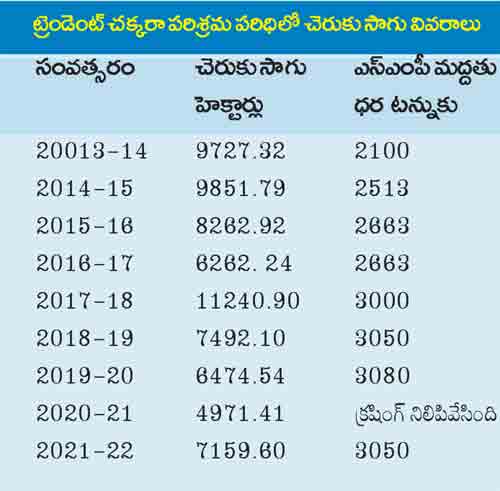 ట్రైడెంట్ యాజమాన్యం చెరుకు టన్నుకు రూ. 3269 మద్దతు ధర ప్రకటించింది. ఈ సీజన్కు ఈ ధర అమలవుతున్నది. నవంబర్ రెండో వారంలో క్రషింగ్ సీజన్ ప్రారం భించేందుకు యాజమాన్యం ఏర్పా ట్లు చేస్తున్నది. ఇందు కోసం యాజమాన్యం ఏర్పాట్లు చేసిం ది. కూలీలు, రవాణా సౌకర్యాలు కల్పించాలని యాజమా న్యానికి సూచించాం.