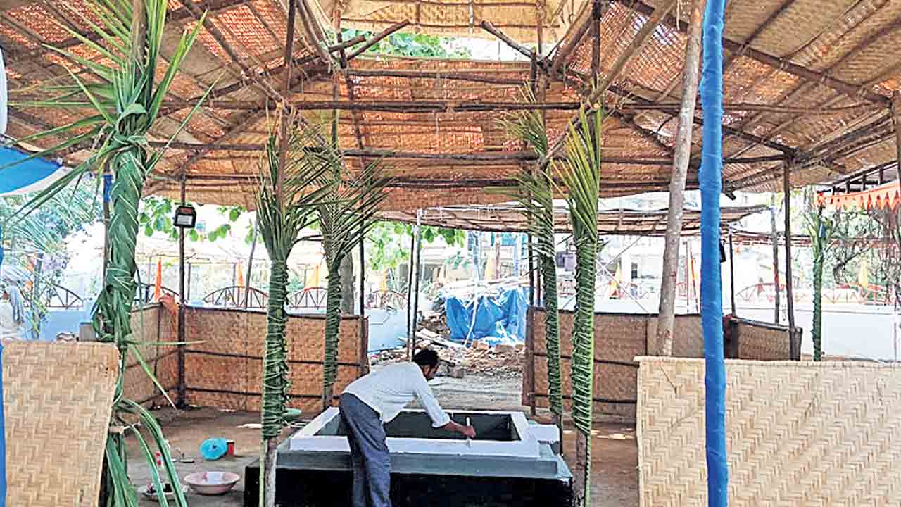 సిద్ధం చేస్తున్న యాగ మండపం