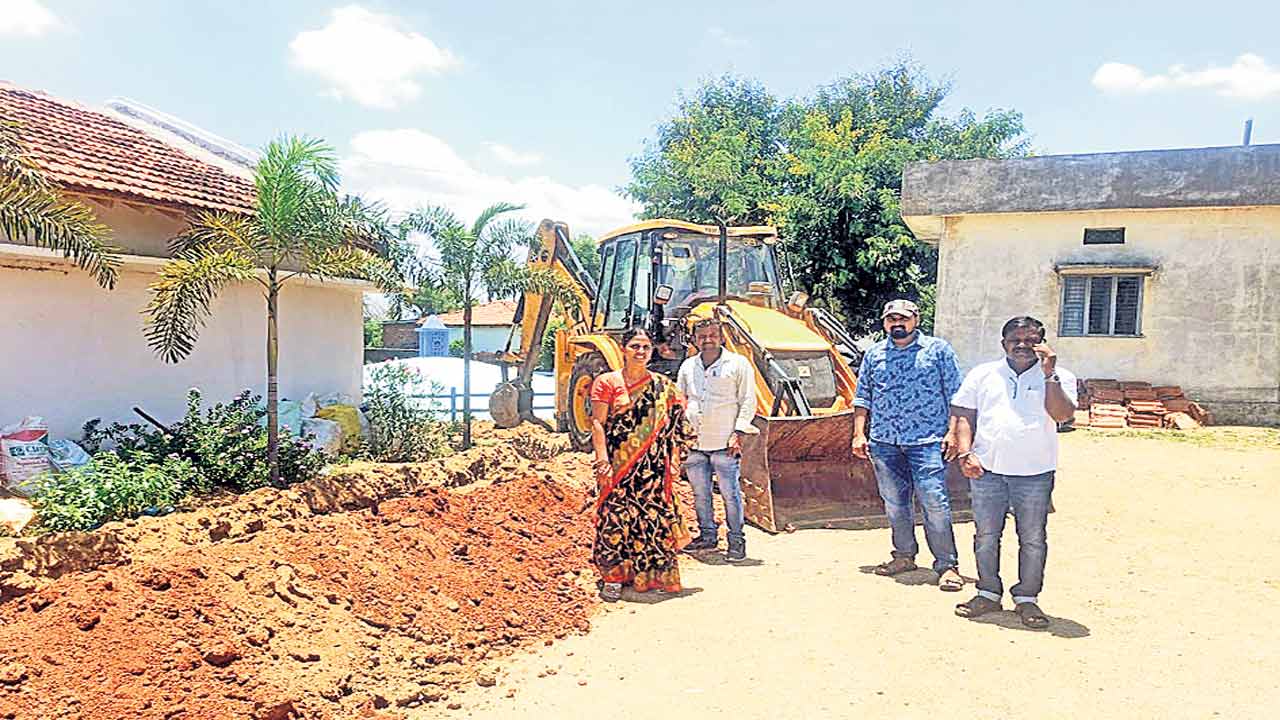 ప్రహరీ పనులను పరిశీలించిన కమిషనర్