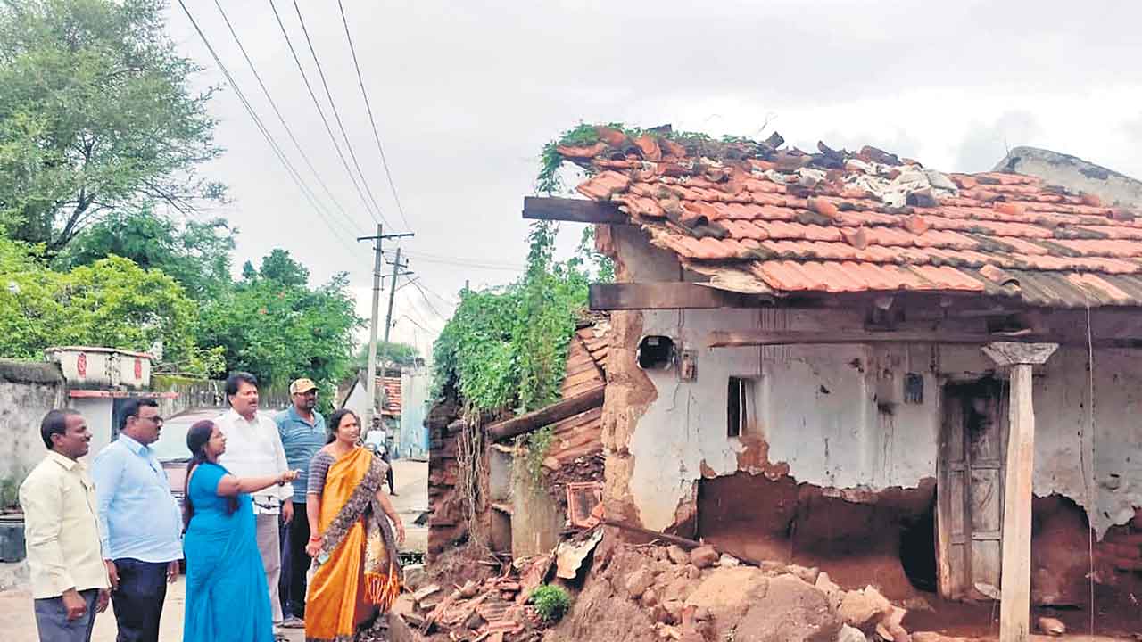 కూలిన ఇండ్లను పరిశీలించిన గడా ప్రత్యేకాధికారి