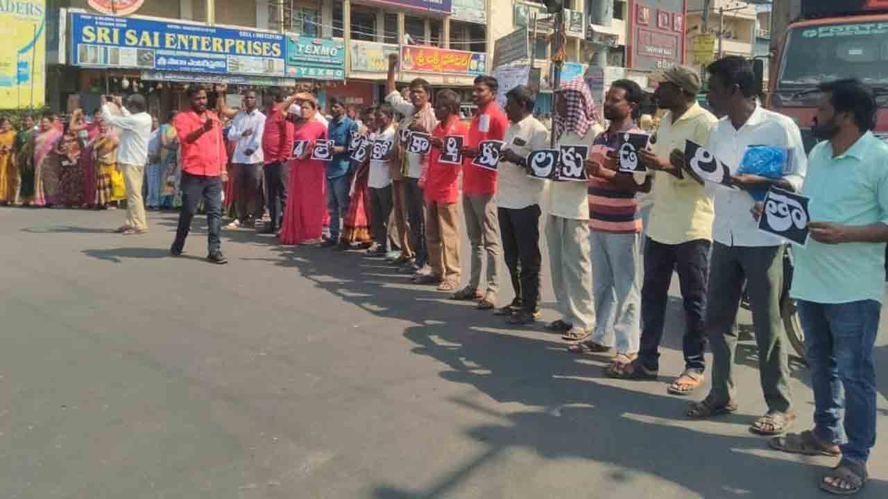 Narsapur : దేశవ్యాప్త సార్వత్రిక సమ్మె జయప్రదమైందని, ఎన్పీఆర్డీ రాష్ట్ర ప్రధాన కార్యదర్శి ఎం.అడివయ్య తెలిపారు. కేంద్ర ప్రభుత్వం అనుసరిస్తున్న ప్రజా కార్మిక రైతు వ్యతిరేక విధానాలకు నశించాలని, నాలుగు లేబర్ కోడ్లను వెంటనే రద్దు చేయాలని ఆయన డిమాండ్ చేశారు. ఉపాధి హామీ చట్టాన్ని పరిరక్షించాలని రైతాంగ సమస్యను పరిష్కరించాలని కోరారు. గురువారం నర్సాపూర్ పట్టణంలో సిఐటియు ఆధ్వర్యంలో సమ్మె సందర్భంగా చిల్డ్రన్స్ పార్క్ నుండి నర్సాపూర్ చౌరస్తా వరకు ర్యాలీ నిర్వహించి రాస్తారోకో నిర్వహించారు.
