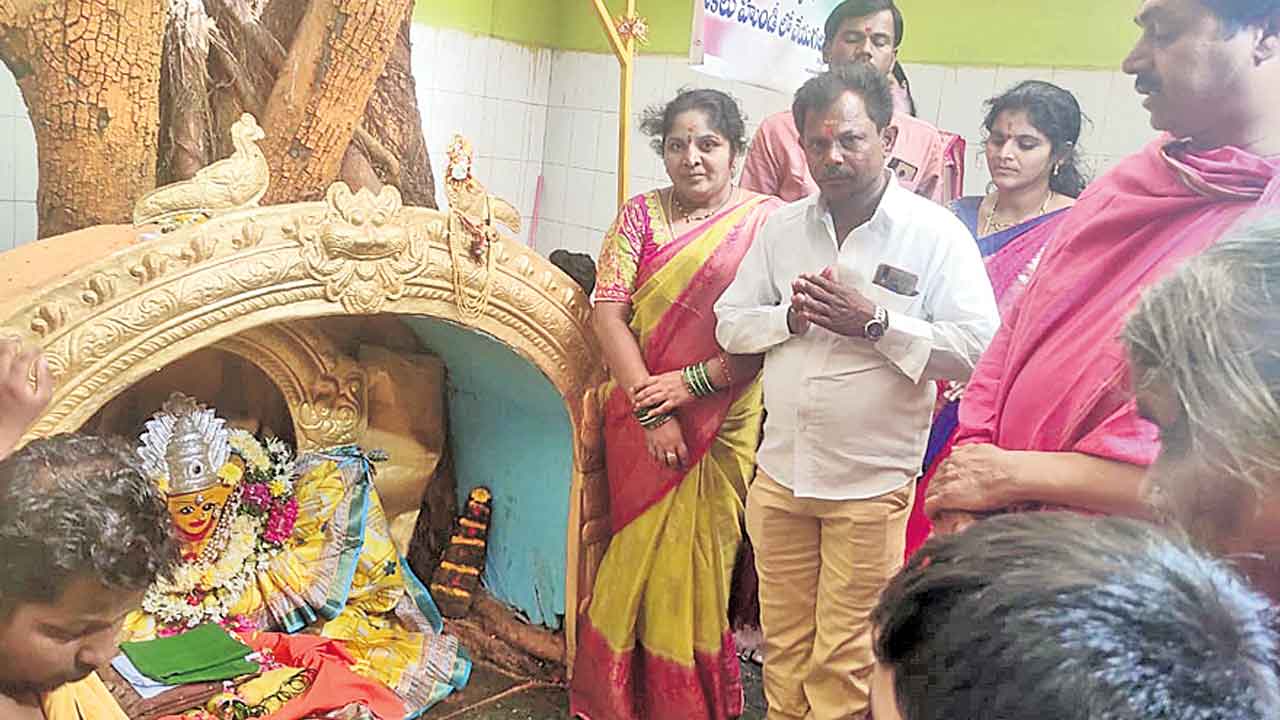 నర్సాపూర్/ కౌడిపల్లి/ మెదక్ రూరల్/ కొల్చారం, మే 29 : నర్సాపూర్ పట్టణంలోని సంగారెడ్డి రోడ్డులో ఉన్న రేణు కాఎల్లమ్మ ఆలయ 11వ వార్షికోత్సవ వాల్పోస్టర్ను ఆది వా రం గౌడ కులస్తులతో కలిసి ఎమ్మెల్యే మదన్రెడ్డి ఆవిష్కరించారు. ఈ సందర్భంగా గౌడ కులస్తులు మాట్లాడుతూ.. జూన్ 4, 5 తేదీల్లో వార్షికోత్సవాలు నిర్వహిస్తున్నట్లు వెల్లడించారు. 4న విఘ్నేశ్వర పూజ, స్వస్తి పుణ్యావాచనం, ఎల్లమ్మ జమదగ్ని కల్యాణోత్సవం, తీర్థప్రసాద వితరణ, సాయంత్రం ఊరేగింపు, 5న సామూహిక కుంకుమార్చనలు, బోనాల ఊరేగింపు కార్యక్రమాలు ఉంటాయని తెలిపారు. ప్రజలందరూ భక్తిమార్గంలో నడవాలని ఎమ్మెల్యే మదన్రెడ్డి సూచించారు. పోస్టర్ ఆవిష్కరణలో గౌడ కులస్తులు అశోక్గౌడ్, ఆంజనేయులుగౌడ్, నాగరాజుగౌడ్, రమేశ్గౌడ్ పాల్గొన్నారు.