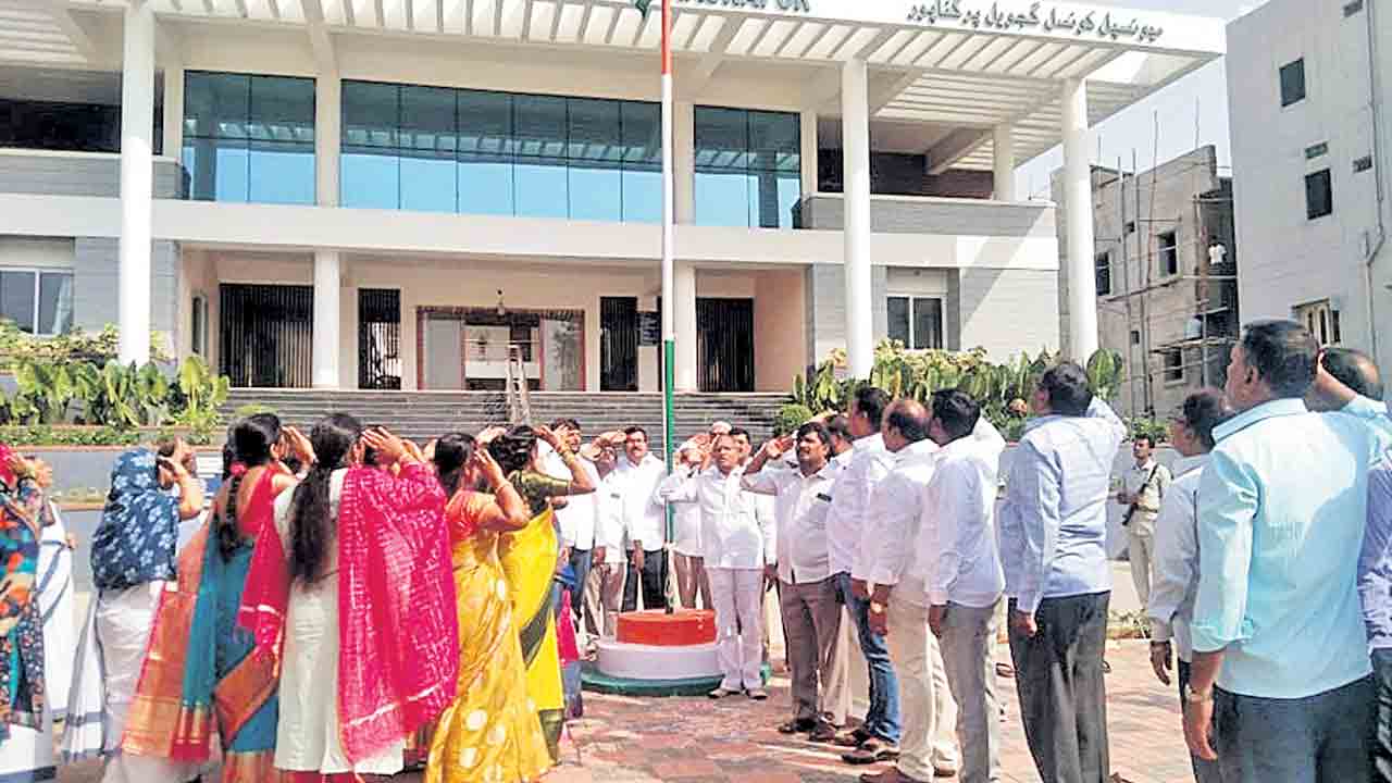 గజ్వేల్,జూన్2: తెలంగాణ ఆవిర్భావ వేడుకలను గజ్వేల్ ప్రజ్ఞాపూర్ మున్సిపాలిటీతో పాటు నియోజకవర్గ వ్యాప్తంగా అన్ని మండల కేంద్రాలు, గ్రామాల్లో ఘనంగా జరుపుకొన్నారు. అన్ని ప్రభుత్వ కార్యాలయాలు, టీఆర్ఎస్ కార్యాలయాలు, తెలంగాణ తల్లి విగ్రహాల వద్ద జాతీయ జెండాలను ఆవిష్కరించి మిఠాయిలు పంచుకుంటూ జైతెలంగాణ, జైకేసీఆర్, జై కిసాన్ అంటూ నినాదాలు చేశారు. గజ్వేల్ పట్టణంలోని మున్సిపల్ కార్యాలయంలో మున్సిపల్ చైర్మన్ ఎన్సీ రాజమౌళి జెండా ఆవిష్కరణ చేసి పారిశుధ్య కార్మికులకు ప్రశంసా పత్రాలు అందజేసి సన్మానించారు. ఐవోసీ ప్రాంగణంలో గడా ప్రత్యేకాధికారి ముత్యంరెడ్డి, కోర్టులో జడ్జి వెంకటమాలిక్ సుబ్రహ్మణ్యన్,ఆయా కార్యాలయాల వద్ద ముఖ్య అధికారులు జెండాలను ఆవిష్కరించారు. కార్యక్రమంలో ఎమ్మెల్సీ డాక్టర్ యాదవరెడ్డి, ఏఎంసీ చైర్పర్సన్ అన్నపూర్ణాశ్రీనివాస్, ఎంపీపీ అమరావతి, జడ్పీటీసీ మల్లేశం, మున్సిపల్ వైస్ చైర్మన్ జకీయొద్దీన్, వైస్ ఎంపీపీ కృష్ణగౌడ్, గడా ప్రత్యేకాధికారి ముత్యంరెడ్డి, ఆర్డీవో విజయేందర్రెడ్డి, ప్రజాప్రతినిధులు, కౌన్సిలర్లు, సర్పంచ్లు, పార్టీ పట్టణాధ్యక్షుడు నవాజ్మీరా, నాయకులు పాల్గొన్నారు.