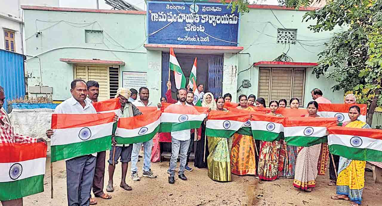 మెదక్ మండలంలోని మంబోజిపల్లి, రాజ్పల్లి, బాలానగర్, మాల్కాపూర్, పాతూరు గ్రామాల్లో సర్పంచ్లు ,ప్రజాప్రతినిధులు ఇంటింటికీ వెళ్లి జాతీయ పతకాలను అందజేశారు. అల్లాదుర్గం మండలంలో సర్పంచ్లు, పంచాయతీ కార్యదర్శులు ఇంటింటికీ జాతీయ జెండాలను అందజేశారు. రామాయంపేట పట్టణంతోపాటు మండలంలోని రాయిలాపూర్, కాట్రియాల, దామరచెరువు, డీ.ధర్మారం, అక్కన్నపేట, ఝాన్సీలింగాపూర్ గ్రామాల్లో జాతీయ జెండాను పంపిణీ చేశారు. మున్సిపాలిటీలో చైర్మన్ జితేందర్గౌడ్, కమిషనర్ ఉమాదేవి, కౌన్సిలర్లు ఇంటింటికీ వెళ్లారు.