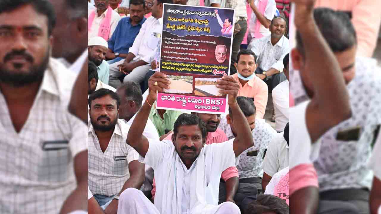 నల్లగొండ, డిసెంబర్ 23 : కేంద్ర ప్రభుత్వం తెలంగాణపై కక్షపూరితంగా వ్యవహరిస్తూ రైతు వ్యతిరేక విధానాలకు పాల్పడుతుండడపై అన్నదాతలు ఆగ్రహం వ్యక్తం చేశారు. ఉపాధిహామీ పథకంలో భాగంగా రాష్ట్రం నిర్మించిన పంట కల్లాలపై ఆక్షేపం తెలుపడంతో నిధులు వెనక్కి ఇవ్వాలని హుకూం జారీ చేయడంపై మండిపడ్డారు. శుక్రవారం బీఆర్ఎస్ రాష్ట్ర వర్కింగ్ ప్రెసిడెంట్ కేటీఆర్ పిలుపు మేరకు