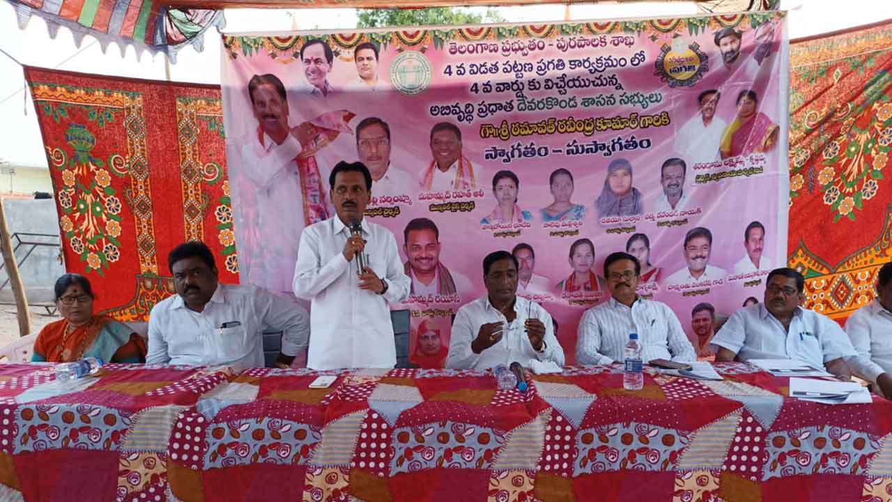 అక్కడ కోటి రూపాయలతో పలు అభివృద్ధి కార్యక్రమాలకు శ్రీకారం చుట్టారు. పల్లెలను అభివృద్ధి చేసేందుకు సీఎం కేసీఆర్ ఆర్థికంగా ఇబ్బందులున్నా ప్రతి నెలా నిధులు ఇస్తున్నారని చెప్పారు. వాటి ద్వారా గ్రామాల్లో శాశ్వత అభివృద్ధి పనులు చేపట్టాలని సూచించారు. దేవరకొండ నియోజకవర్గంలో ఎమ్మెల్యే రవీంద్రకుమార్ పలు చోట్ల పల్లె, పట్టణ ప్రగతి కార్యక్రమాలను ప్రారంభించారు. పీఏపల్లి మండలం పెద్దగట్టులో పల్లె ప్రగతిని ప్రారంభిస్తూ గ్రామ సభలో మాట్లాడారు. మారుమూల గ్రామాల్లో సైతం మౌలిక వసతుల కల్పనకు సర్కార్ పెద్దపీట వేస్తున్నదని, పల్లె ప్రగతి అందుకు ఎంతో దోహద పడుతుందని ఎమ్మెల్యే చెప్పారు.