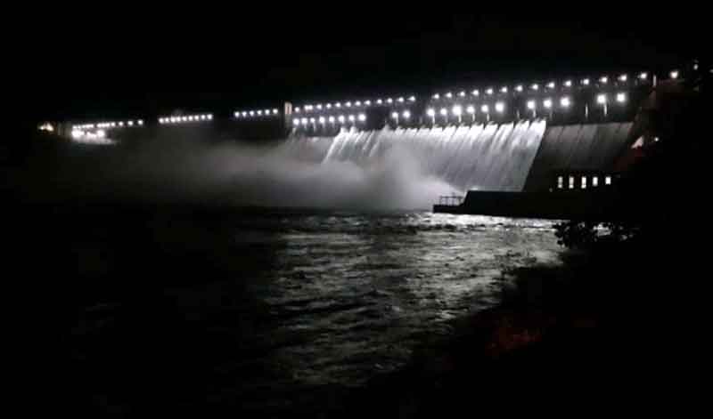 నందికొండ, ఆగస్టు 5 : శ్రీశైలం నుంచి నాగార్జునసాగర్ రిజర్వాయర్కు ఇన్ఫ్లో పెరగడంతో డ్యాం 16క్రస్ట్ గేట్లను 10అడుగులు ఎత్తి 2,38,944 క్యూసెక్కుల నీటిని దిగువకు విడుదల చేస్తున్నారు. శ్రీశైలం రిజర్వాయర్కు 1,52,282 క్యూసెక్కుల ఇన్ఫ్లో వస్తుండగా 5 క్రస్ట్ గేట్లు, జలవిద్యుత్ కేంద్రాల ద్వారా 2,85,182 క్యూసెక్కులు విడుదలవుతున్నది. నాగార్జునసాగర్ రిజర్వాయర్ పూర్తి నీటి సామర్థ్యం 590 (312.50 టీఎంసీలు) అడుగులకు గాను 589.60 అడుగుల (310.8498 టీఎంసీల) మేర నీరు నిల్వ ఉంచి, శ్రీశైలం నుంచి వస్తున్న ఇన్ఫ్లోను యథాతథంగా విడుదల చేస్తున్నారు. ఎడమ కాల్వకు 4,416క్యూసెక్కులు, ఎస్ఎల్బీసీ ద్వారా 1,800, ప్రధాన జలవిద్యుత్ కేంద్రం ద్వారా 33,698 క్యూసెక్కులు, కుడి కాల్వకు 6,324 క్యూసెక్కుల నీటిని విడుదల చేస్తున్నారు.