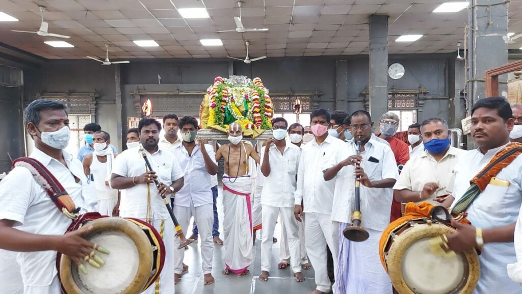 ఉప ప్రధానార్చకుల ఆధ్వర్యంలోని అర్చక బృందం వైభవంగా ఈ పూజలు నిర్వహించారు. ముత్తైదువులు మంగళహారతులతో అమ్మవారిని స్తుతిస్తూ పాటలు పాడుతూ సేవ ముందు నడిచారు. తిరువీధి సేవ అనంతరం అమ్మ వారిని బాలాలయం ముఖ మంటపంలోని ఊయలతో శయనింపు చేయించారు. గంట పాటు వివిధ రకాల పాటలతో అమ్మవారిని కొనియాడుతూ లాలిపాటల కోలాహలంగా కొనసాగింది. ప్రతి రోజూ నిర్వహించే నిత్య కల్యాణోత్సంలో భక్తులు అధిక సంఖ్యలో పాల్గొన్నారు.
