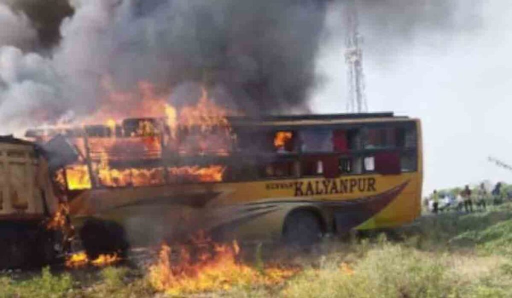 బర్మేర్-జాతీయ రహదారిపై ఈ ఉదయం ఘోర రోడ్డు ప్రమాదం జరిగింది. ప్రయాణికులతో వెళ్తున్న ఓ బస్సు-లారీ ఎదురెదురుగా ఢీకొన్నాయి. దాంతో బస్సు డీజిల్ ట్యాంక్ పగిలి మంటలు చెలరేగాయి. దాంతో బస్సులోని ఐదుగురు ప్రయాణికులు అక్కడికక్కడే సజీవదహనమయ్యారు. కాలిన గాయాలతో ఆస్పత్రిలో చికిత్స పొందుతూ మరో ఏడుగురు ప్రాణాలు కోల్పోయారు. మరో 22 మందికి చికిత్స పొందుతున్నారు.
