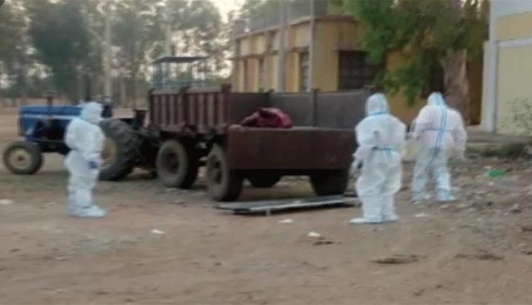 రాయపూర్: కరోనాతో మరణించిన ఒకరి మృతదేహాన్ని ఓపెన్గా ట్రాక్టర్ ట్రాలీలో తరలించారు. ఛత్తీస్గఢ్లో జరిగిన ఈ ఘటన స్థానికంగా కలకలం రేపింది. రాజ్నందన్ గ్రామంలో కరోనాతో చనిపోయిన ఒక వ్యక్తి మృతదేహాన్ని ఆసుపత్రి నుంచి ట్రాక్టర్ ట్రాలీలో తరలించడం వివాదమైంది. ఈ విషయాన్ని ఉన్నతాధికారులకు తెలిపారు. అయితే అంత్యక్రియల కోసం ఏర్పాట్లు చేసే క్రమంలో తొందర వల్ల ఇలా జరిగి ఉంటుందని పంచాయతీ అధికారి మిత్లేష్ చౌదరి తెలిపారు.