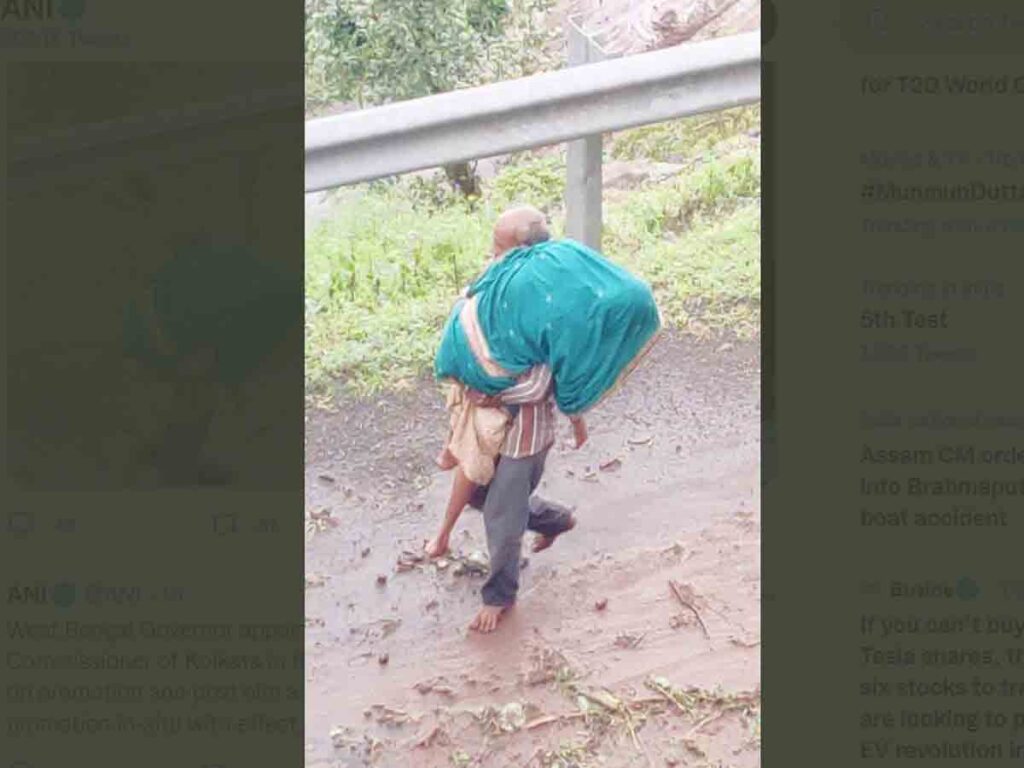 ముంబై: అనారోగ్యంతో ఉన్న భార్యను ఒక వృద్ధుడు తన భుజంపై మోశాడు. అయితే ఆసుపత్రికి తరలిస్తుండగా ఆమె చనిపోయింది. మహారాష్ట్రలోని నందుర్బార్లో బుధవారం ఈ విషాదకర ఘటన జరిగింది. భారీ వర్షాల కారణంగా కొండచరియలు విరిగిపడి రహదారి మూసుకుపోయింది. దీంతో అంబులెన్స్ చిక్కుకుని రాలేకపోయింది. చేసేదేమీ లేక పరిస్థితి సీరియస్గా ఉన్న భార్యను వృద్ధుడు తన భుజాలపై మోశాడు. అయితే ఆసుపత్రికి తీసుకెళ్లేలోపే ఆమె చనిపోయింది.