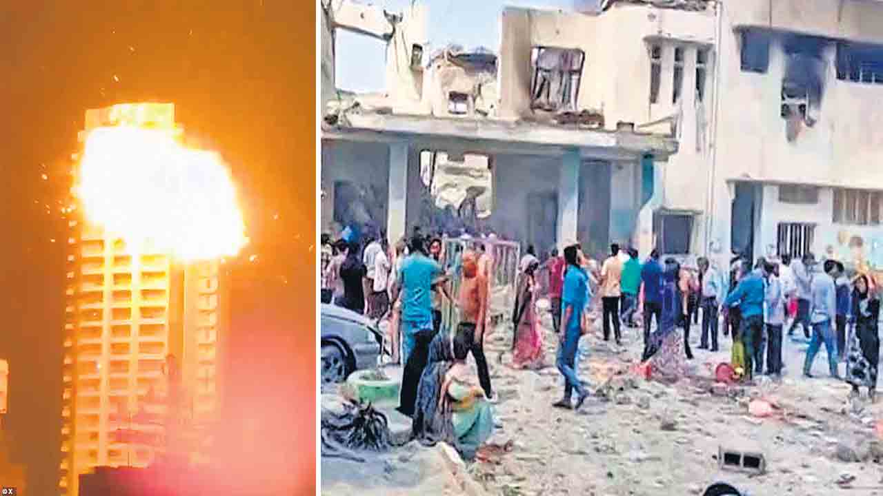 భవనం సమీపంలో పేలుడు ప్రపంచంలోనే అత్యంత ఎత్తైన భనవంగా పేరుపొందిన దుబాయ్లోని బుర్జ్ ఖలీఫాపై దాడి జరిగిందా? బుర్జ్ ఖలీఫా సమీపంలో ఓ భారీ పేలుడు సంభవించి దట్టమైన నల్లటి పొగ వ్యాపించిన దృశ్యాలతో ఓ వీడియో సోషల్ మీడియాలో దర్శనమిచ్చింది. ఇరాన్ జరిపిన డ్రోన్ దాడిలో బుర్జ్ ఖలీఫాకు ఏమైనా నష్టం జరిగిందీ లేనిదీ అధికారికంగా తెలియరాలేదు. దుబాయ్ నడిబొడ్డున 828 మీటర్ల ఎత్తైన బుర్జ్ ఖలీఫా విలువ దాదాపు 150కోట్ల డాలర్లు ఉంటుందని అంచనా. దీన్ని నిర్మించిన ఎమార్ ప్రాపర్టీస్ సుమా రు 150 కోట్ల డాలర్లకు ఈ ఆకాశ హర్మ్యాన్ని బీమా చేయించింది.