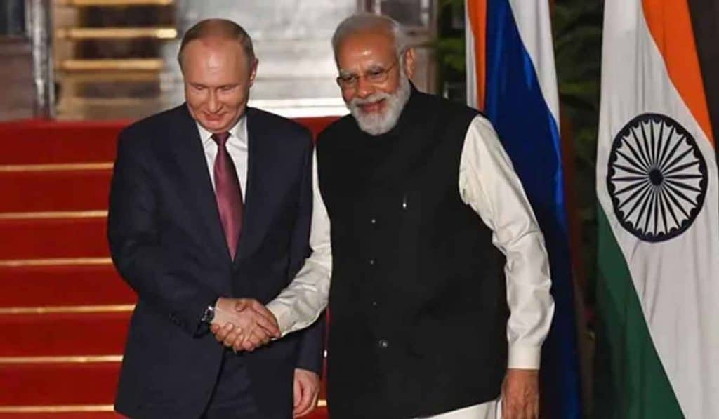 ప్రధాని నరేంద్ర మోదీతో రష్యా అధ్యక్షుడు వ్లాదిమీర్ పుతిన్ భేటీ అయ్యారు. రష్యా- భారత్ శిఖరాగ్ర సమావేశం ఢిల్లీలోని హైదరాబాద్ హౌజ్లో జరిగింది. ఈ సందర్భంగా వీరిద్దరి భేటీ జరిగింది. 2019 లో బ్రిక్స్ సమావేశం తరువాత వీరిద్దరూ ప్రత్యక్షంగా కలుసుకోవడం ఇదే ప్రథమం. కోవిడ్తో సహా ఎన్ని అవాంతరాలు ఎదురైనా, ఇరు దేశాల మధ్య స్నేహబంధం మాత్రం చెక్కుచెదరలేదని ప్రధాని మోదీ ఈ సందర్భంగా వ్యాఖ్యానించారు. కోవిడ్ వ్యాక్సిన్ ట్రయల్స్తో పాటు సంక్షోభ సమయంలో ఇరు దేశాల పౌరులను తమ తమ దేశాలకు చేరవేసే విషయంలో ఇరు దేశాలూ సంపూర్ణ సహకారంతో ముందుకు సాగాయని మోదీ సంతృప్తి వ్యక్తం చేశారు.