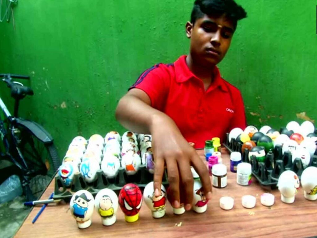 చెన్నై: తమిళనాడుకు చెందిన ఒక విద్యార్థి ఖాళీ సమయాన్ని సద్వినియోగం చేసుకున్నాడు. గుడ్డు పెంకులపై పలు కార్టూన్ చిత్రాలు గీసి తన ప్రతిభను చాటుకున్నాడు. కోయంబత్తూర్కు చెందిన సంజయ్ అనే విద్యార్థి ఇంటర్ ఫస్ట్ ఇయర్ చదువుతున్నాడు. కరోనా నేపథ్యంలో విధించిన లాక్డౌన్ వల్ల తరగతులు లేక పోవడంతో అతడికి ఏమీ తొచలేదు. దీంతో ఖాళీ సమయాన్ని చిత్రాలు గీయడానికి వినియోగించాడు. ప్రతి రోజు గుడ్లు తినే అతడు వాటి పెంకులను భద్రపరిచేవాడు. అనంతరం ఆ గుడ్ల పెంకులపై వాటర్ కలర్స్తో కార్టూన్ చిత్రాలను గీచాడు. ఇలా ఇప్పటి వరకు వందకుపైగా కార్టూన్ చిత్రాలు గీచినట్లు సంజయ్ తెలిపాడు. కాగా, అతడి ప్రతిభను తల్లిదండ్రులతోపాటు స్థానికులు మెచ్చుకున్నారు.