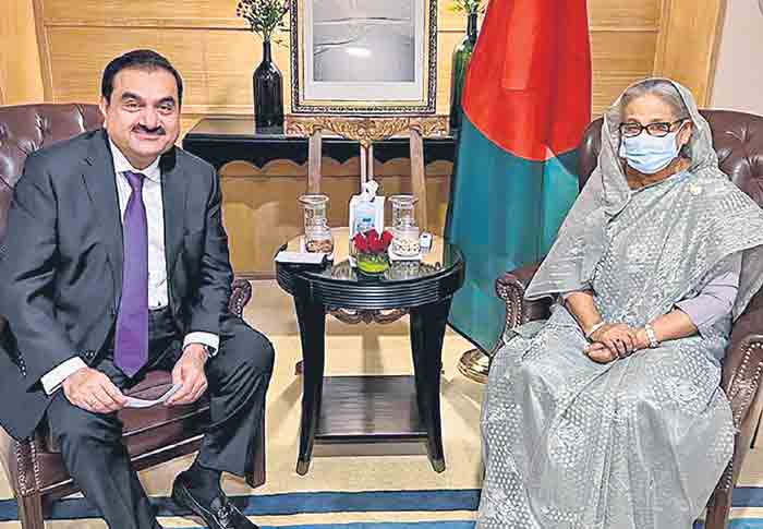 ఫొటోలో బంగ్లాదేశ్ ప్రధాని షేక్ హసీనాతో ఉన్నది దేశాధినేతో, రాజకీయ ప్రముఖుడో కాదు.. ఆయన ఒక వ్యాపారి. పేరు గౌతమ్ అదానీ. భారత పర్యటనకు వచ్చిన హసీనాతో ఢిల్లీలో ప్రధాని మోదీ తదితరుల తర్వాత భేటీ అయిన ఏకైక వ్యక్తి ఈయనే. గత ఏప్రిల్లో బ్రిటన్ ప్రధానమంత్రి బోరిస్ జాన్సన్ భారత పర్యటనకు వచ్చినప్పుడు కూడా ప్రధాని తర్వాత ఆయనను కలిసే అవకాశం దక్కింది అదానీకే.