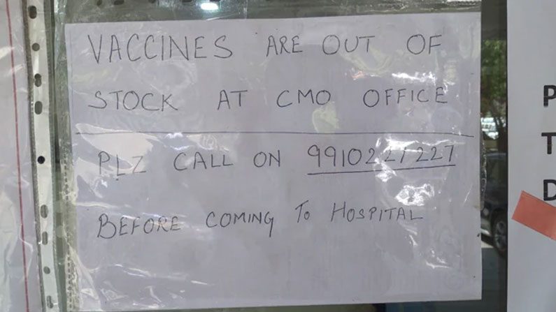 ఘజియాబాద్ : దేశ రాజధాని ఢిల్లీకి సమీపంలోని ఘజియాబాద్లో కొవిడ్ టీకా కొరత ఏర్పడింది. ప్రభుత్వ ఆస్పత్రులతో పాటు ప్రయివేటు ఆస్పత్రుల్లో కరోనా టీకా అందుబాటులో లేదు. దీంతో వ్యాక్సిన్స్ ఔట్ ఆఫ్ స్టాక్ అని ఆస్పత్రుల ఎదుట పోస్టర్లను ప్రదర్శించారు. టీకా కోసం వచ్చే ముందు ఈ నంబర్కు ఫోన్ చేసి రావాలని సూచించారు. పోస్టర్లపై ఆస్పత్రుల ఫోన్ నంబర్లను రాసి ఉంచారు. టీకా మళ్లీ ఎప్పుడు వస్తుందో చెప్పలేం అని ఆస్పత్రి సిబ్బంది పేర్కొంటున్నారు. టీకా కొరత సోమవారం నుంచి ఏర్పడిందని తెలిపారు.