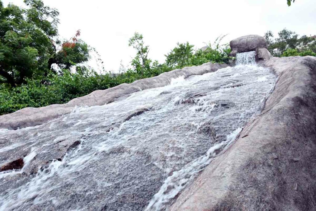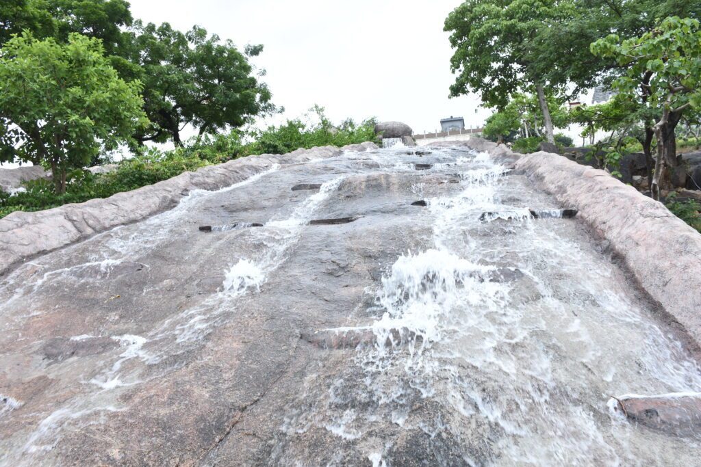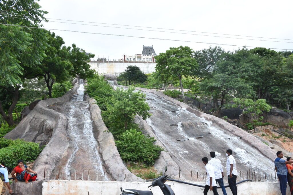 యాదాద్రి సందర్శనకు వచ్చే భక్తులకు మధురానుభూతి కలిగేలా ఏర్పాట్లు కొనసాగుతున్నాయి. సీఎం కేసీఆర్ సంకల్ప సిద్ధితో అధికారులు యాదాద్రి క్షేత్రాన్ని సకల హంగులతో తీర్చిదిద్దుతున్నారు. భక్తులకు కనులవిందు చేసేలా ఇప్పటికే వివిధ రకాల మొక్కలతో గార్డెన్స్ ఏర్పాటుచేసిన అధికారులు.. తాజాగా మొదటి ఘాట్ రోడ్డు వెంట ఉన్న రాతి గుట్టలపై ఏకంగా జలపాతాన్నే సృష్టించారు. గుట్టపై నుంచి జాలువారుతున్న దృశ్యం భక్తులకు ఆహ్లాదాన్నిస్తుందని వైటీడీఏ అధికారులు తెలిపారు.