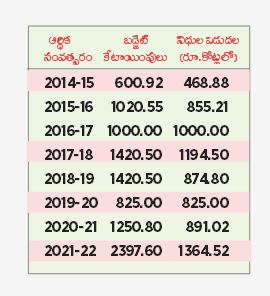 ఒకప్పుడు నిధుల కేటాయింపులో నిరాధరణకు గురైన జలమండలి. ప్రత్యేక రాష్ట్రంలో ఆత్మగౌరవంతో నిలుస్తున్నది. విశ్వనగరిగా రూపాంతర చెందుతున్న భాగ్యనగరి సిగలో జలమండలి ఓ మణిహారాన్ని తలపిస్తున్నది. మెరుగైన తాగు, మురుగు నీటి సేవలందించడమే లక్ష్యంగా కేటాయింపులు చేశారు. గతంతో ఎన్నడూ లేని విధంగా ఆర్థికశాఖ మంత్రి హరీశ్రావు సోమవారం అసెంబ్లీలో ప్రవేశపెట్టిన బడ్జెట్లో జలమండలికి అగ్రతాంబూలం వేశారు. 2022-23 సంవత్సరానికిగానూ రూ. 1925 కోట్లు కేటాయించారు. కృష్ణా, గోదావరి హడ్కో రుణ చెల్లింపులకు రూ. 700కోట్లు, సీవరేజీ, ఇతర అభివృద్ధి పనులకు రూ. 200కోట్లు, సుంకిశాల తాగునీటి పథకానికి రూ. 725కోట్లు, ఉచిత తాగునీటి పథకానికిగానూ రూ. 300కోట్లు కేటాయించారు.