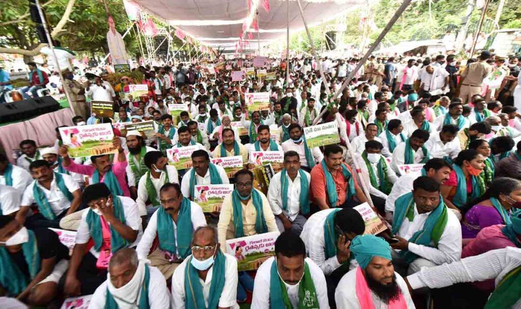 అన్నదాత పక్షాన రాష్ట్ర సర్కారు రణభేరి మోగించింది. యాసంగి ధాన్యాన్ని కొనుగోలు చేయాలని డిమాండ్ చేస్తూ గురువారం ఇందిరాపార్క్ వద్ద మహాధర్నాకు దిగింది. ముఖ్యమంత్రి కేసీఆర్ పిలుపు మేరకు ఉమ్మడి జిల్లా నుంచి మంత్రి అల్లోల ఇంద్రకరణ్రెడ్డి, ఆదిలాబాద్, బోథ్, ఖానా పూర్ ఎమ్మెల్యేలు జోగు రామన్న, రాథోడ్ బాపురావ్, రేఖానాయక్ తదితర ప్రజాప్రతినిధులు దండుగా వెళ్లి హోరెత్తించారు. కేంద్రం యాసంగి ధాన్యం కొంటదా? కొనదా? స్పష్టతనివ్వాలని సీఎంతో కలిసి నిరసన గళమెత్తారు. ‘తొండి మాటలు ఆపండి.. వడ్లు వెంటనే కొనండి’ ‘పంజాబ్ వడ్లు కొంటరెట్ల.. తెలంగాణ వడ్లు కొనరెట్ల’ వంటి ప్లకార్డులు పట్టుకుని కేంద్ర సర్కారుకు వ్యతి రేకంగా నినదించారు. బీజేపీ సర్కారు ఈ ప్రాంత రైతులపై వివక్ష చూపుతున్నదని, దిగి వచ్చే దాకా పోరాటం చేస్తామని స్పష్టం చేశారు.