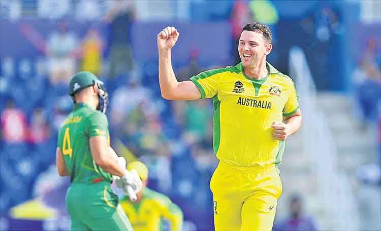 అబుదాబి: పొట్టి ఫార్మాట్లో తొలిసారి ప్రపంచ కప్ చేజిక్కించుకోవాలని తహతహలాడుతున్న ఆస్ట్రేలియా టీ20 వరల్డ్కప్లో బోణీ కొట్టగా.. డిఫెండింగ్ చాంపియన్గా బరిలోకి దిగిన వెస్టిండీస్ మొదటి మ్యాచ్లో ఘోర పరాజయం మూటగట్టుకుంది. శనివారం సూపర్-12 గ్రూప్-1 పోరులో ఆస్ట్రేలియా 5 వికెట్ల తేడాతో దక్షిణాఫ్రికాపై విజయం సాధించింది. మొదట బ్యాటింగ్ చేసిన దక్షిణాఫ్రికా 20 ఓవర్లలో 9 వికెట్ల నష్టానికి 118 పరుగులు చేసింది. మార్క్మ్ (40) టాప్ స్కోరర్. ఆసీస్ బౌలర్లలో ‘మ్యాన్ ఆఫ్ ది మ్యాచ్’ హజిల్వుడ్, జంపా, స్టార్క్ తలా రెండు వికెట్లు పడగొట్టారు. అనంతరం స్వల్ప లక్ష్యఛేదనలో కంగారూలు కాస్త తడబడ్డా.. చివరికి 19.4 ఓవర్లలో 5 వికెట్లు కోల్పో యి 121 పరుగులు చేశారు. స్టీవ్ స్మిత్ (35), స్టొయినిస్ (24 నాటౌట్) రాణించారు.