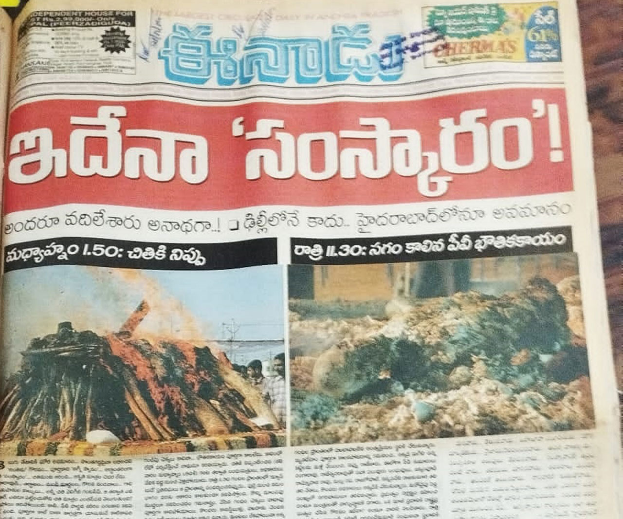 ఒక్కసారి రాజ్ఘాట్కు వెళ్లి స్మారక స్థలాలు చూస్తుంటే.. అక్కడ మన తెలంగాణ బిడ్డ పీవీకి అంత్యక్రియలు జరగలేదన్న సంగతి తెలిసి మనసు కకావికలమవుతుంది. అక్కడ పీవీకి కేవలం ‘స్మృతి స్థల్’ అని పేరు మాత్రమే మిగిలింది. విందు లేదుకాని విడెం (తాంబూలం) తీసుకొమ్మన్న సామెతను గుర్తు చేస్తుందది. సమాధి లేని స్మృతి అటువంటిదే!