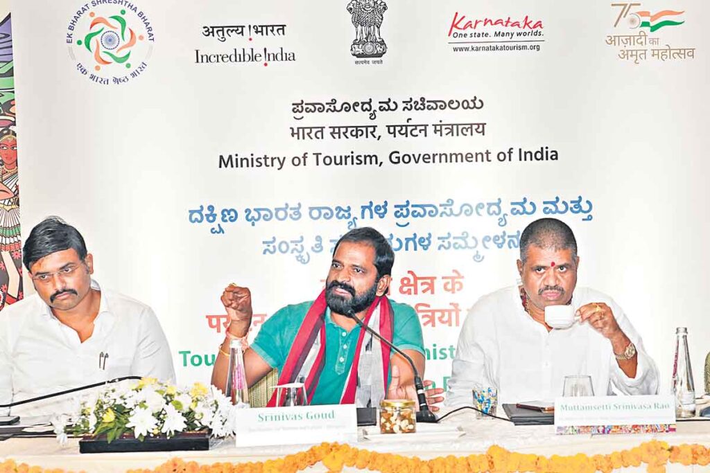 హైదరాబాద్, అక్టోబర్ 29 (నమస్తే తెలంగాణ): పర్యాటక రంగానికి పరిశ్రమ హోదా కల్పించాలనే పెండింగ్ ప్రతిపాదనను కేంద్ర ప్రభుత్వం సానుకూలంగా పరిశీలించాలని రాష్ట్ర పర్యాటక, సాంస్కృతికశాఖ మంత్రి శ్రీనివాస్గౌడ్ కోరారు. రాష్ట్రంలో 11వ శతాబ్దపు కాకతీయుల నృత్యం పేరిణికి పూర్వ వైభవం తీసుకొచ్చేందుకు ‘పేరిణి కళాక్షేత్రం’ ఏర్పాటుచేయాలని విజ్ఞప్తి చేశారు. బెంగళూరులో జరుగుతున్న దక్షిణాది రాష్ర్టాల పర్యాటక, సాంస్కృతికశాఖ మంత్రుల సమావేశంలో రెండోరోజు శుక్రవారం శ్రీనివాస్గౌడ్ మాట్లాడుతూ.. హైదరాబాద్లో సైన్స్ మ్యూజియం ఏర్పాటుకు తమవంతుగా పూర్తి సహకారం అందిస్తామని హామీ ఇచ్చారు. దేశంలోని పర్యాటక ప్రదేశాల విశిష్టత, ప్రాముఖ్యతలను వివరిస్తూ అన్ని భాషల్లో డిజిటల్ యాప్ను రూపొందించాలని కేంద్రాన్ని కోరారు. టూరిస్ట్ గైడ్లకు నైపుణ్యాభివృద్ధిపై శిక్షణ ఇచ్చి గుర్తింపు కార్డులు జారీచేయాలని, గౌరవ వేతనాన్ని ఇవ్వాలని విజ్ఞప్తి చేశారు. దక్షిణ తెలంగాణలోని మన్యంకొండ లక్ష్మీ వేంకటేశ్వరస్వామి దేవాలయ అభివృద్ధికి రూ.50 కోట్ల కేటాయింపు ప్రతిపాదనలను పరిశీలించాలని కోరారు. దీనిపై సానుకూలంగా స్పందించిన కేంద్ర పర్యాటకశాఖ ఉన్నతాధికారులు.. త్వరలోనే కేంద్ర బృందం ఆలయాన్ని సందర్శించి తగిన ప్రణాళికలు రూపొందిస్తుందని చెప్పారు.