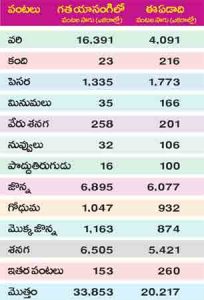 యాసంగిలో వరికి బదులు ఇతర పంటలు వేయాలని రాష్ట్ర సర్కారు పక్కా ప్రణాళికలు రూపొందించింది. ఆ మేరకు జిల్లాలో రికార్డు స్థాయిలో వరి సాగు తగ్గించి ఇతర పంటల వైపు రైతులు మొగ్గుచూపారు. నాడు జిల్లాల్లో అత్యధికంగా సాగయ్యే పంటలనే రైతులు ఈ యాసంగిలో వేసేందుకు ఆసక్తి చూపారు. ఈ యాసంగిలో మిశ్రమ పంటలకు రైతులు ప్రాధాన్యమిచ్చారు. వరి సాగు చేస్తే నష్టపోతామని భావించిన రైతులు అధికారుల సూచనల మేర కు మిశ్రమ పంటలను సాగు చేస్తున్నారు. జొన్న, గోధు మ, శనగ, నువ్వులు, వేరుశనగ, పొద్దుతిరుగుడు, పెసర, మినుములువంటి పంటలను మిశ్రమంగా సాగు చేశారు.