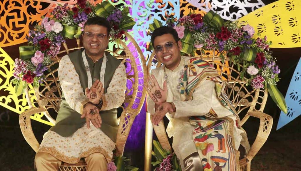 ఒకరి భావాలు ఒకరు తెలుసుకొని ప్రేమికులుగా మారారు. పెండ్లి చేసుకోవాలని నిర్ణయించుకొని తల్లిదండ్రులకు చెప్పారు. వారి అంగీకారంతో, రెండు కుటుంబాల సమక్షంలో ట్రాన్స్జెండర్ సోఫియా డేవిడ్ వీరి వివాహాన్ని జరిపించారు. స్వలింగ సంపర్కుల వివాహ వేడుక అంగరంగ వైభవంగా జరిగింది. మంగళ స్నానాలు, సంగీత్ కార్యక్రమాలు కూడా ఘనంగా జరిగాయి. ఎల్జీబీటీక్యూ కమ్యూనిటీ వాళ్లంతా వీరిని ఆశీర్వదించారు.
