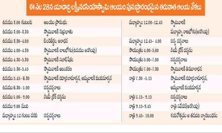 (సర్వదర్శనం వేళల్లో) ;ఉదయం 6.30 నుంచి రాత్రి 9.15 గంటల వరకు