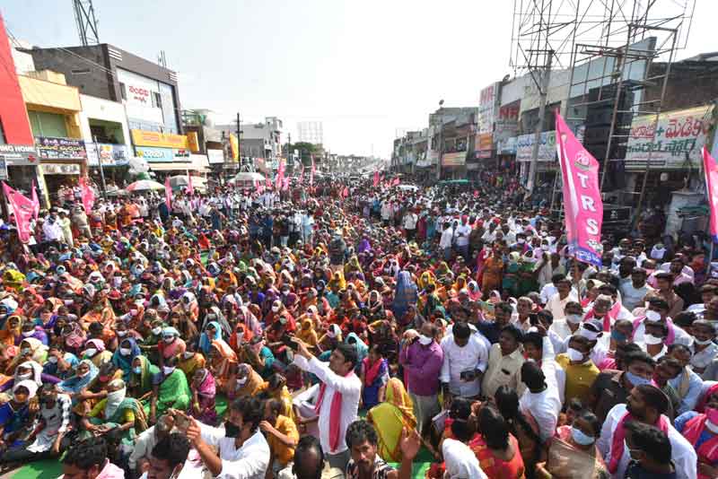 హుజూరాబాద్లో అహంకారానికి, అభివృద్ధికి మధ్య పోటీ జరుగుతున్నదని అన్నారు. జమ్మికుంటలోని బిజిగిరిషరీఫ్లో బుధవారం నిర్వహించిన ధూంధాంకు మంత్రి కొప్పుల ఈశ్వర్, ఎంపీలు బడుగుల లింగయ్యయాదవ్, బండా ప్రకాశ్, ఎమ్మెల్యే కోరుకంటి చందర్, టీఆర్ఎస్ నాయకుడు పాడి కౌశిక్రెడ్డితో కలిసి ముఖ్య అతిథిగా హాజరై మాట్లాడారు. హుజూరాబాద్లో ముఖ్యమంత్రి సభ జరిగితే వార్ వన్ సైడ్ అయ్యే అవకాశాలున్నాయని ఎన్నికల కమిషన్తో కుమ్మక్కై ఆయన్ను రాకుండా చేశారని విమర్శించారు. ఎన్ని రోజులని సీఎంను ఇక్కడికి రాకుండా ఆపగలరని బీజేపీని ప్రశ్నించారు. గెల్లు గెలిచిన రెండు వారాల్లో సీఎం కేసీఆర్ హుజూరాబాద్కు వచ్చి స్వయంగా మెడికల్ కాలేజీ ప్రకటన చేస్తారని, నియోజకవర్గానికి వరాల జల్లు కురిపిస్తారని అన్నారు.